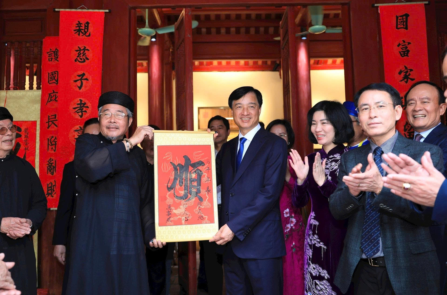 tặng chữ "Thuận" tại đền Kim Liên. Ảnh: Quang Thái