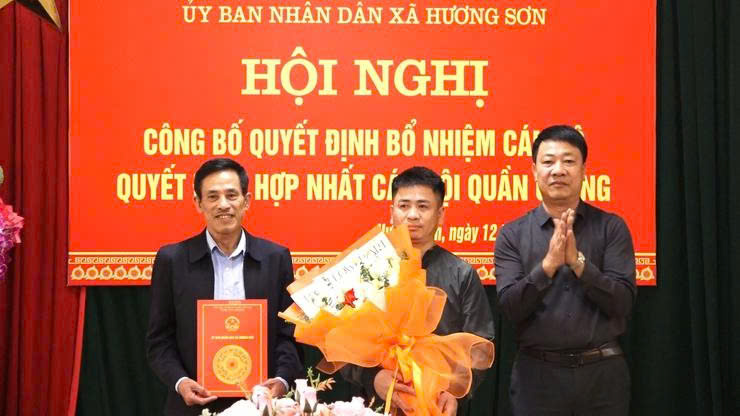 Sáng ngày 12/12/2025, Ủy ban nhân dân xã Hương Sơn tổ chức Hội nghị công bố và trao các Quyết định về công tác cấn bộ và hợp nhất các tổ chức Hội quần chúng do Đảng, Nhà nước giao nhiệm vụ.