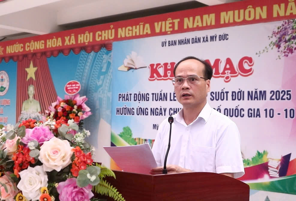Phó Chủ tịch UBND xã Mỹ Đức nhắc lại lời dạy của Chủ tịch Hồ Chí Minh: "Học ở trường, học ở sách vở, học lẫn nhau và học ở nhân dân. Học tập là công việc suốt đời." Đồng chí Phó Chủ tịch UBND xã khẳng định, trong bối cảnh toàn cầu hóa và Cách mạng công nghiệp 4.0, nếu không học tập thường xuyên, chúng ta sẽ nhanh chóng tụt hậu. Ngược lại, việc nuôi dưỡng tinh thần "học tập suốt đời" sẽ giúp mỗi người có thêm tri thức, kỹ năng, bản lĩnh để phát triển bản thân và đóng góp vào sự phồn vinh chung.