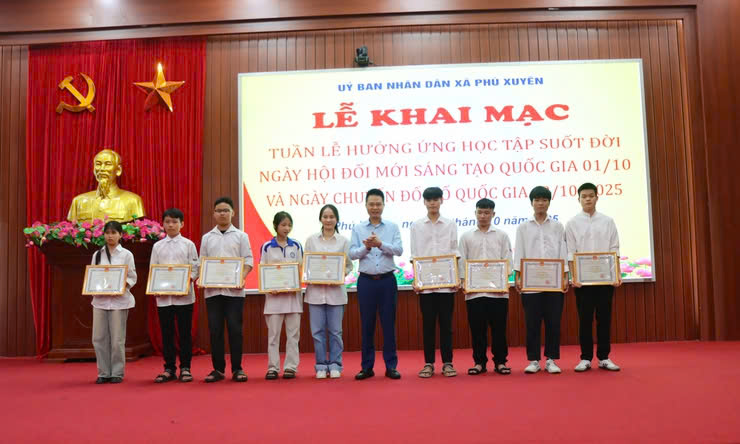 khen thưởng các em học sinh đạt điểm cao trong kỳ thi tốt nghiệp THPT 2025 Theo Kế hoạch, Tuần lễ hưởng ứng học tập suốt đời năm 2025 được tổ chức từ ngày 01/10 đến ngày 07/10/2025 với chủ đề: "Học để phát triển bản thân, làm chủ tri thức và công nghệ, góp phần xây dựng đất nước hùng cường, thịnh vượng". Căn cứ điều kiện cụ thể của xã, trong Tuần lễ sẽ diễn ra các hoạt động như: Tuyên truyền về vai trò của tự học, học tập suốt đời gắn với việc chủ động làm chủ tri thức và công nghệ; Tổ chức các buổi tọa đàm, diễn đàn với chuyên gia về xu hướng công nghệ, tri thức số và phương pháp học tập hiệu quả, giúp người dân nâng cao nhận thức, hình thành ý thức tự học thường xuyên; Tổ chức các lớp tập huấn, bồi dưỡng kỹ năng số cơ bản và nâng cao cho mọi đối tượng; Huy động doanh nghiệp, tổ chức giáo dục phối hợp tổ chức các buổi tư vấn, trải nghiệm nghề nghiệp trong lĩnh vực công nghệ thông tin, giúp học sinh, sinh viên được rèn luyện kỹ năng số trong môi trường làm việc thực tế; Phát động phong trào xây dựng thư viện số, tủ sách số tại cơ sở giáo dục và cộng đồng; tổ chức các cuộc thi và hoạt động trải nghiệm về công nghệ số và tri thức mới; Tổ chức các hoạt động kết nối nhà trường - doanh nghiệp nhân dịp Tuần lễ...