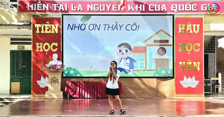 đại diện học sinh của xã Quôc Oai phát biểu chia sẻ cảm nghĩ tại buổi Lễ