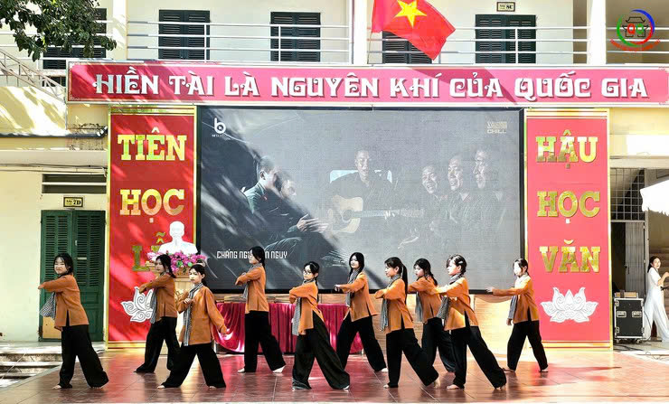 Tiết mục văn nghệ của học sinh Trường THCS Phượng Cách chào mừng buổi Lễ