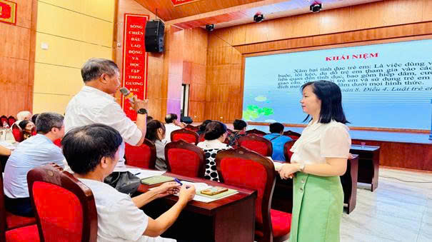 Tại Hội nghị, các đại biểu đã được báo cáo viên Nguyễn Thị Thu Nhàn - Chi cục Dân số, Trẻ em và phòng, chống tệ nạn xã hội, Sở Y tế thành phố Hà Nội phổ biến những nội dung quan trọng tại Quyết định số 06/2019/QĐ-TTg, ngày 03/01/2029 của Thủ tướng Chính phủ Ban hành Quy định tiêu chuẩn, trình tự đánh giá và công nhận xã, phường, thị trấn phù hợp với trẻ em; trong đó nhấn mạnh các tiêu chí xây dựng xã, phường phù hợp với trẻ em như: Bảo đảm môi trường sống an toàn, lành mạnh; phòng ngừa và xử lý các hành vi xâm hại, bạo lực trẻ em; tăng cường sự tham gia của trẻ em vào các vấn đề liên quan đến trẻ em; các chính sách dành cho trẻ em...
