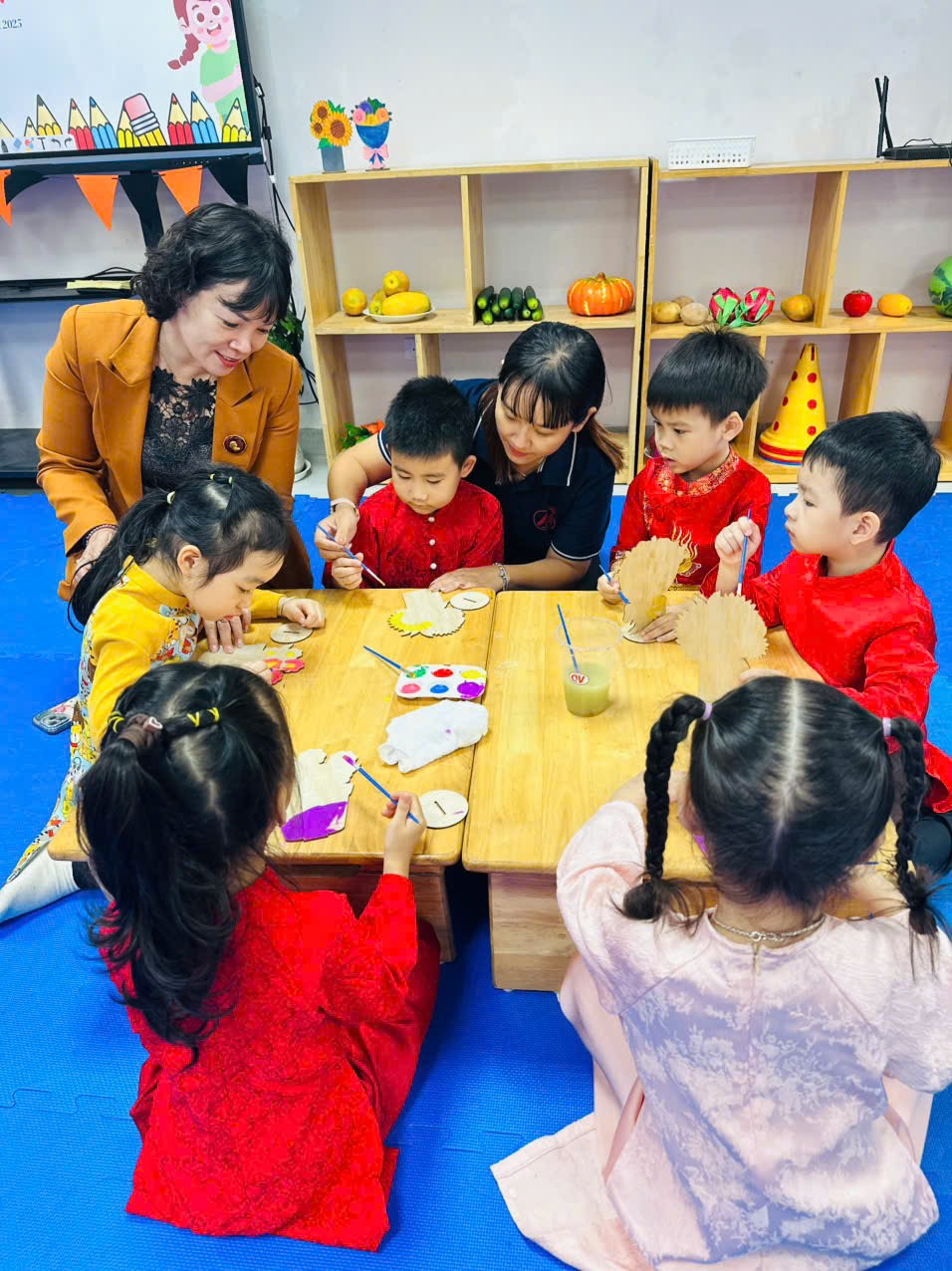 Cô và trò Trường Mầm non An Dương trong giờ học Với vai trò Hiệu trưởng kiêm Chi hội trưởng Khuyến học Nhà trường, cô luôn giữ vai trò nòng cốt, tích cực tham mưu với cấp ủy, chính quyền địa phương về các giải pháp nâng cao chất lượng phong trào “Học tập suốt đời” cũng như chỉ đạo và tổ chức nhiều hoạt động thiết thực, hiệu quả nhằm xây dựng Trường Mầm Non An Dương đạt chuẩn “Đơn vị học tập”, với những nội dung như: Tổ chức sinh hoạt chuyên môn theo hướng nghiên cứu bài học; Triển khai các lớp bồi dưỡng kỹ năng mềm cho giáo viên; Xây dựng không gian sáng tạo, góc sách truyện, thư viện thân thiện cho trẻ và giáo viên tạo cho giáo viên và học sinh tâm lý vui tươi thân thiện khi tới trường; Ứng dụng công nghệ thông tin và chuyển đổi số trong quản lý, giảng dạy…100% giáo viên sử dụng thành thạo phần mềm quản lý và tư liệu hóa hoạt động giảng dạy; Phối hợp tổ chức các buổi tuyên truyền “Gia đình học tập”, “Dòng họ học tập”, “Cộng đồng học tập”; Vận động các nguồn Quỹ Khuyến học hỗ trợ trẻ em khó khăn; Tuyên dương khen thưởng cho giáo viên, nhân viên giỏi; Huy động sự tham gia tích cực của phụ huynh học sinh, các tổ chức đoàn thể trong xây dựng môi trường học tập rộng mở….