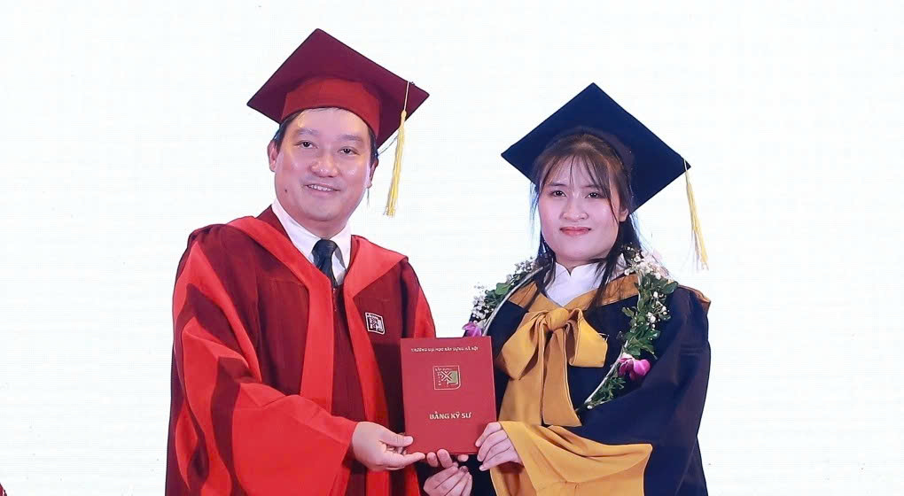 Tại Lễ trao bằng hôm 11/10/2025, khi đại diện sinh viên phát biểu, Hoài Thu xúc động kể về chuỗi ngày miệt mài bên đồ án, bản vẽ, mô hình cùng những báo cáo, thí nghiệm, mô phỏng, hay những ngày bảo vệ căng thẳng. Hoài Thu nhìn nhận đây là dấu mốc đặc biệt trong 5 năm đại học với một bông "hoa của đá" - biệt danh dành cho nữ sinh Trường Xây dựng.