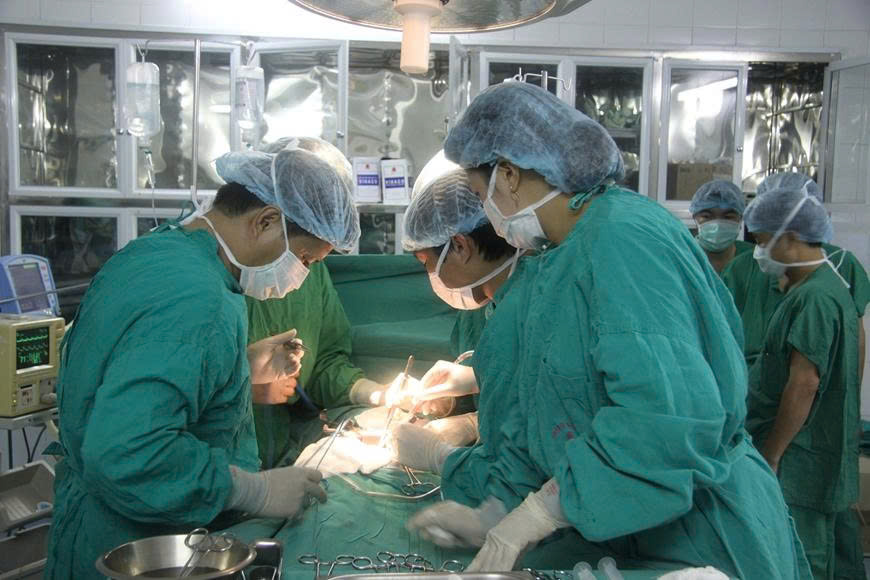 GS.TS.Lê Trung Hải (ngoài cùng bên trái) mổ ghép thận