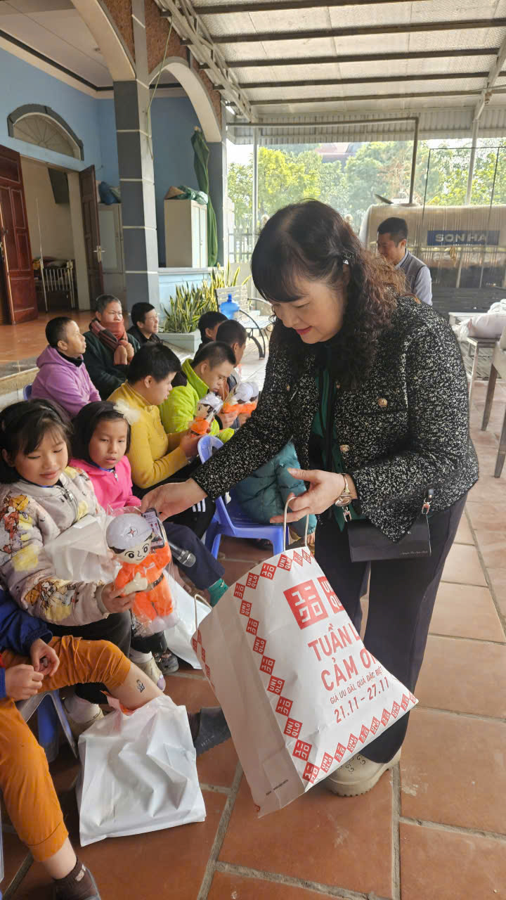 tặng quà cho các em tại "Mái ấm Thánh Tâm" Chủ tịch Hội Khuyến học Hà Nội và đoàn công tác bày tỏ sự đồng cảm, chia sẻ với những khó khăn, vất vả mà các sơ và những người nuôi dưỡng tại đây đã phải trải qua trong thời gian dài. Chủ tịch Hội Khuyến học Hà Nội cho biết, bản thân vô cùng ngưỡng mộ và biết ơn tấm lòng thơm thảo của những con người đã dành trọn cuộc đời của mình để cưu mang những trẻ em bị thiệt thòi trong cuộc sống, không những thế còn dành trọn đạo làm con của mình để chăm lo cho những cụ già, những người không còn nơi nương tựa khi tuổi đã về chiều.