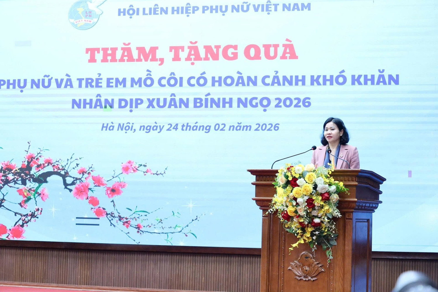 Phát biểu tại buổi trao quà, Chủ tịch Trung ương Hội Liên hiệp Phụ nữ Việt Nam Nguyễn Thị Tuyến chia sẻ với những khó khăn của chị em hội viên phụ nữ có hoàn cảnh khó khăn tại 6 xã, phường. Đồng chí mong muốn những phần quà tuy nhỏ bé nhưng sẽ góp phần động viên, khích lệ phụ nữ có hoàn cảnh khó khăn, trẻ em mồ côi vươn lên trong cuộc sống.