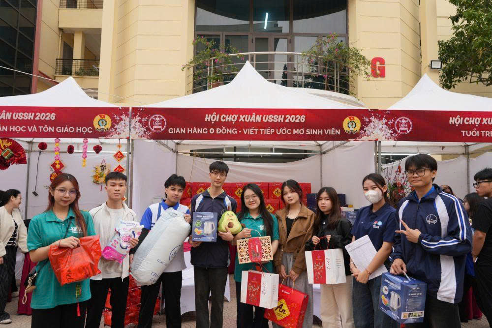 Trường Đại học Khoa học Xã hội và Nhân văn, Đại học Quốc gia Hà Nội vừa trao quà tết cho 50 cán bộ, sinh viên có hoàn cảnh khó khăn tại Hội chợ Xuân Nhân văn 2026.