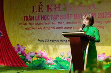 Phát biểu tại buổi Lễ, đồng chí Đỗ Thị Diễm Hằng - Uỷ viên Ban Thường vụ Đảng ủy, Phó Chủ tịch HĐND xã Trung Giã nhấn mạnh: Học tập suốt đời không chỉ là quyền lợi mà còn là trách nhiệm của mỗi công dân trong bối cảnh chuyển đổi số và cuộc Cách mạng công nghiệp 4.0. Đây là dịp để toàn xã khơi dậy truyền thống hiếu học, nuôi dưỡng tinh thần tự học trong mọi tầng lớp nhân dân.