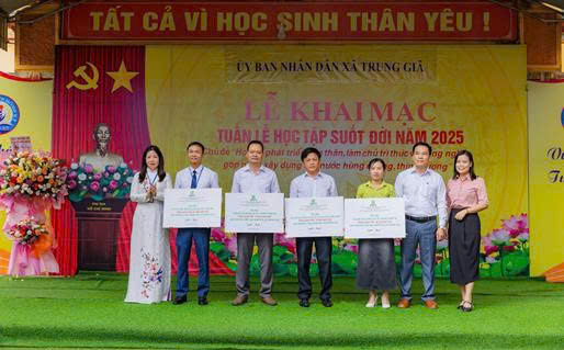 Các đại biểu tặng hoa chúc mừng Lễ khai mạc Nhân dịp Lễ khai mạc Tuần lễ hưởng ứng học tập suốt đời năm 2025”, Công ty Cổ phần Năng lượng Môi trường Thiên Ý đã trao tặng Trường THCS Hồng Kỳ 81 triệu đồng, gồm 50 suất học bổng cho các em học sinh và “Thư viện mở”; Trường Tiểu học Hồng Kỳ 48,25 triệu đồng, gồm 50 suất học bổng và trang thiết bị; Trường THCS Nam Sơn 55 triệu đồng, gồm 50 suất học bổng và cải tạo cơ sở vật chất cho nhà trường; Trường Tiểu học Nam Sơn 52 triệu đồng, gồm 50 suất học bổng và trang thiết bị; với tổng số tiền lên đến 236,25 triệu đồng./.