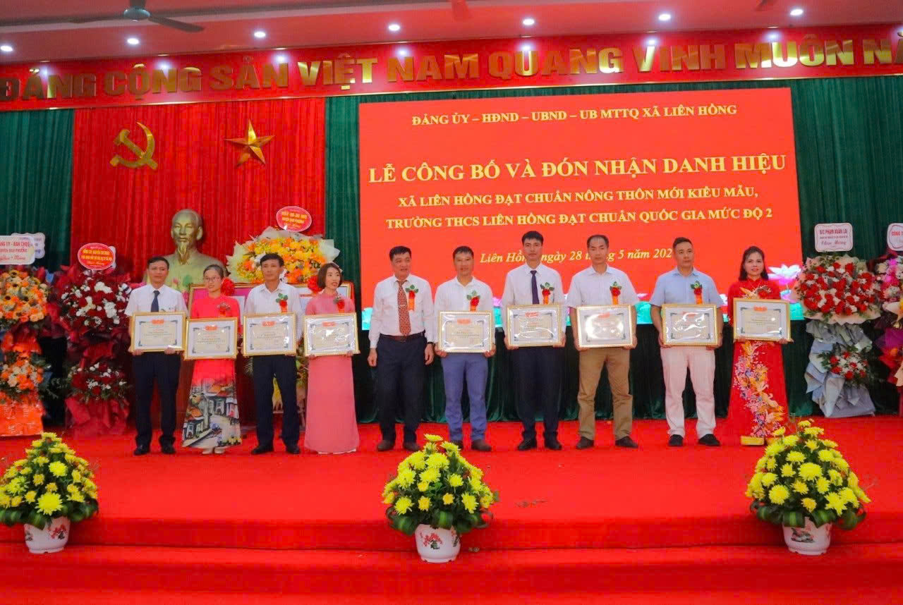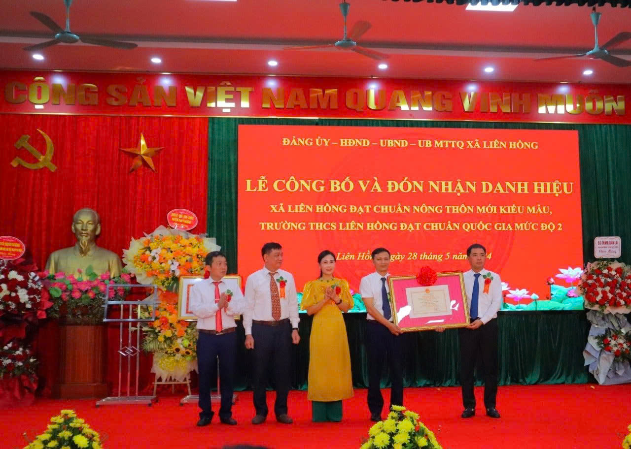 trao danh hiệu Trường chuẩn quốc gia mức độ 2 cho Trường THCS Liên Hồng