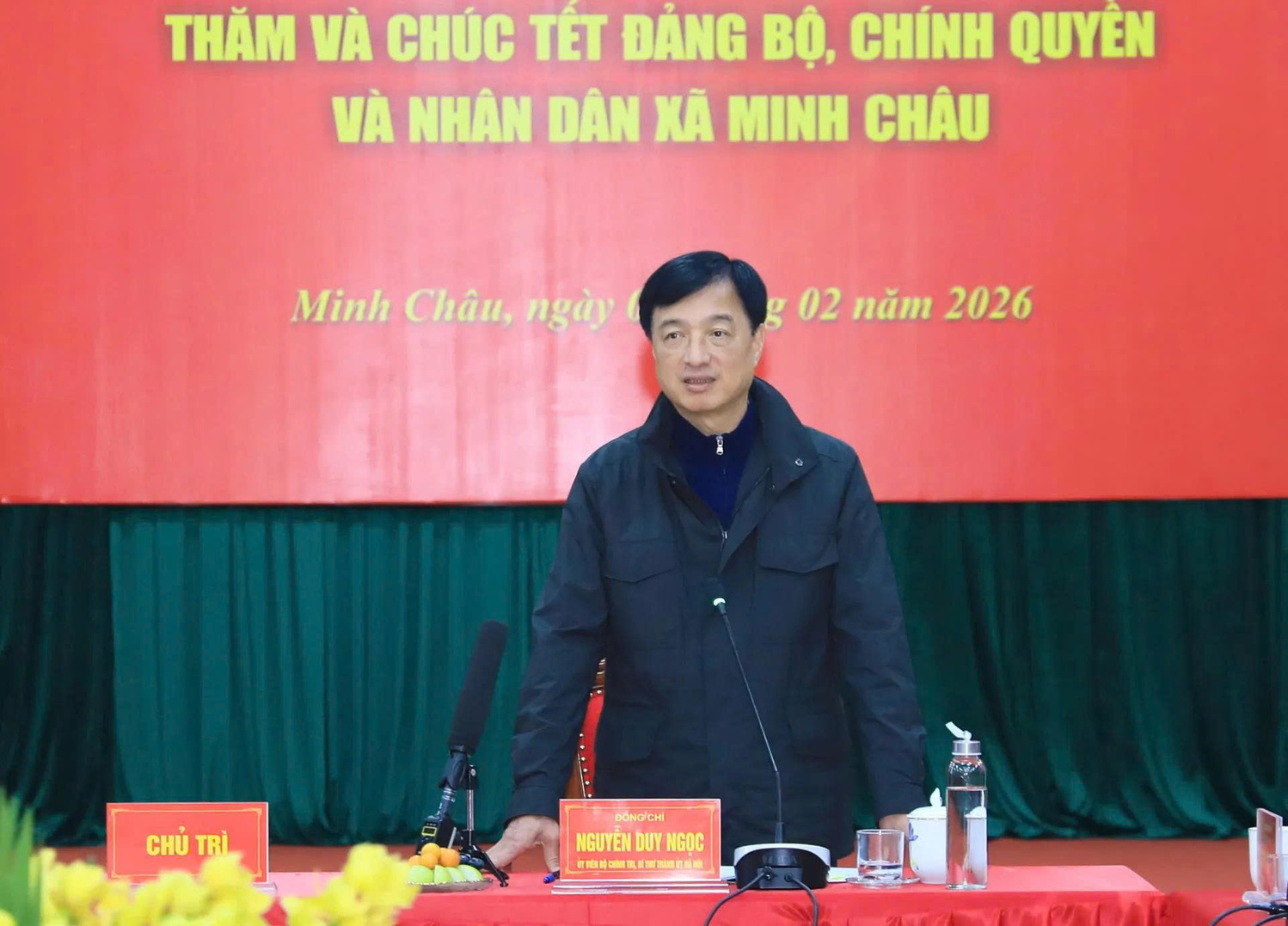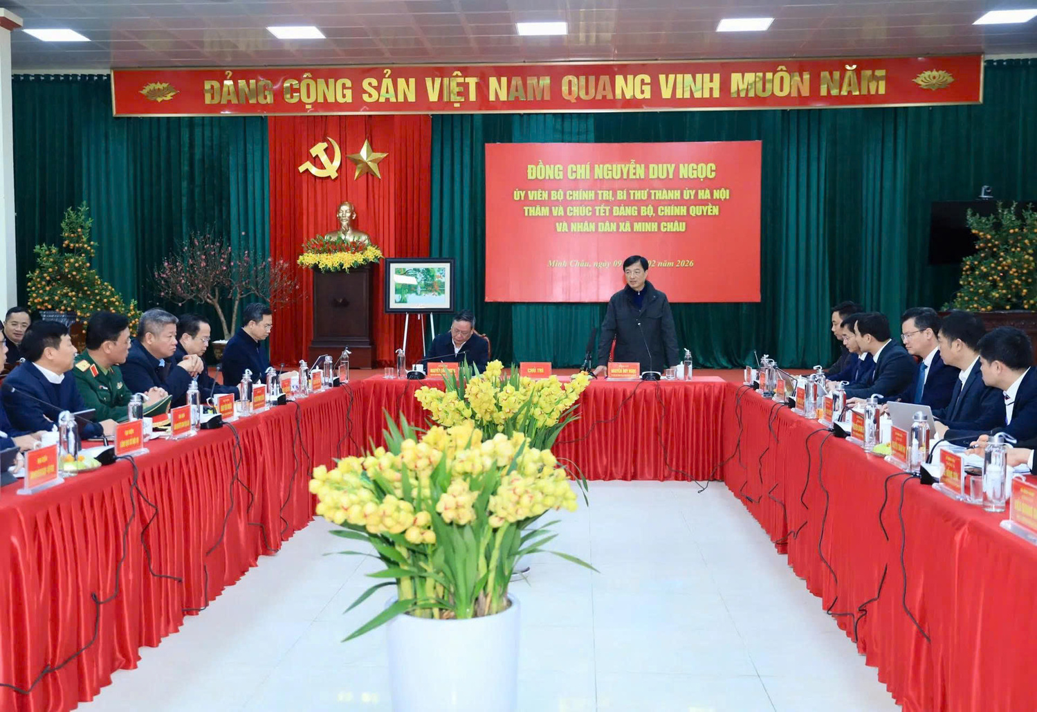 Bí thư Thành ủy Hà Nội Nguyễn Duy Ngọc cho biết, Đoàn công tác của Thành phố đến thăm, chúc Tết và lắng nghe các ý kiến, kiến nghị, đề xuất để kịp thời góp ý những định hướng phát triển xã Minh Châu trong giai đoạn mới. Việc này thể hiện tinh thần đã nói là làm, làm nhanh, làm có hiệu quả, làm đến cùng của toàn hệ thống chính trị Thành phố.
