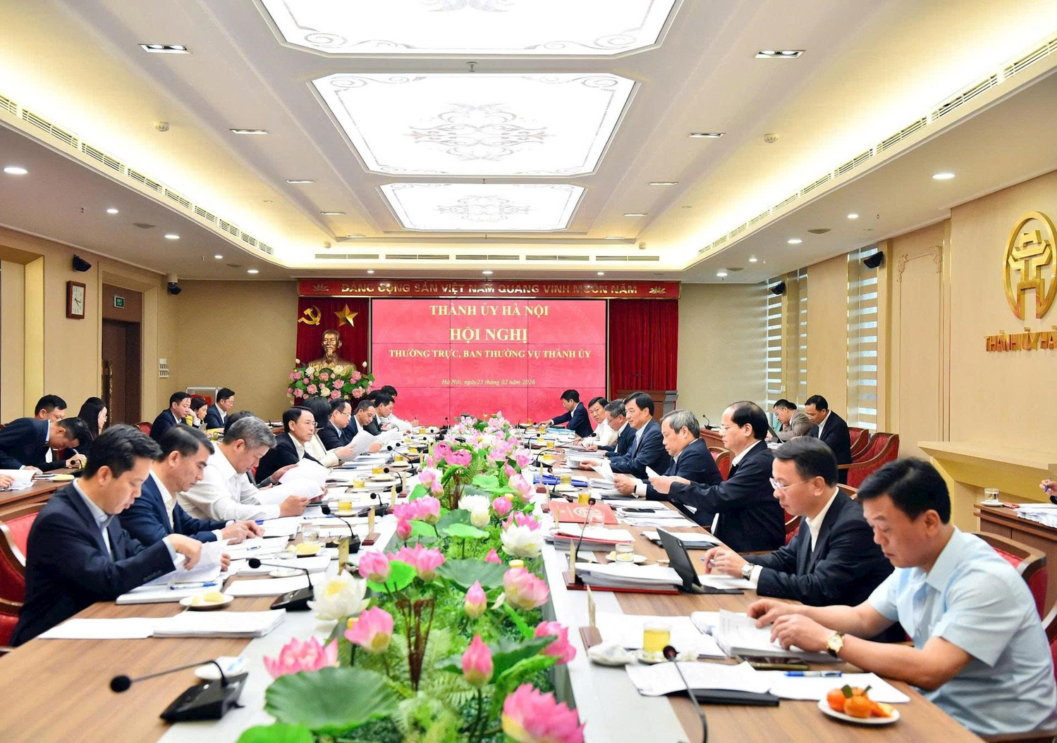 Chiều 23-2, tại trụ sở Thành ủy, Ban Thường vụ Thành ủy Hà Nội tổ chức họp nghe báo cáo về tình hình, kết quả tổ chức phục vụ nhân dân đón Tết Nguyên đán Bính Ngọ 2026.