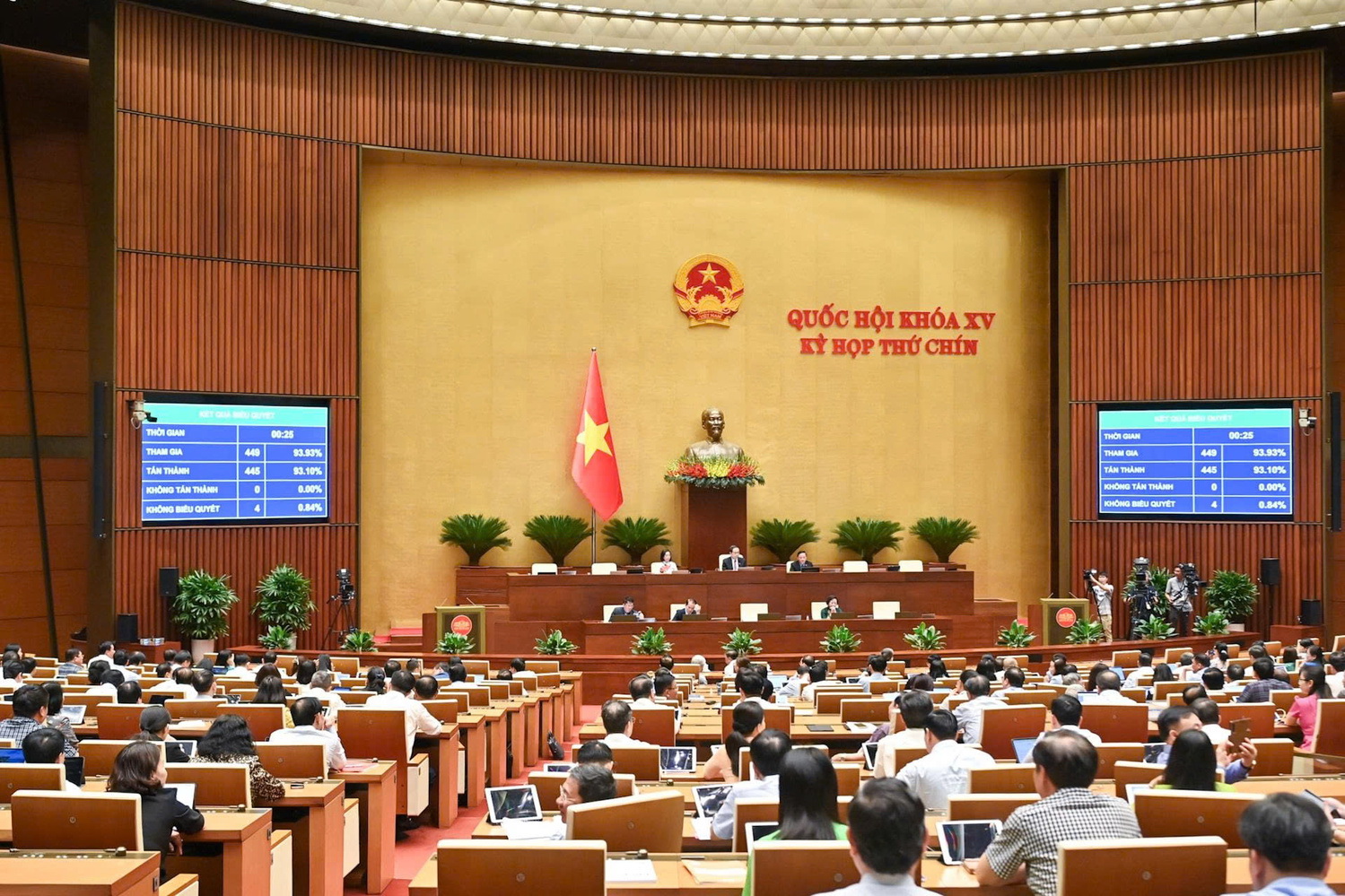 Quốc hội biểu quyết thông qua Nghị quyết. Ảnh: Duy Linh