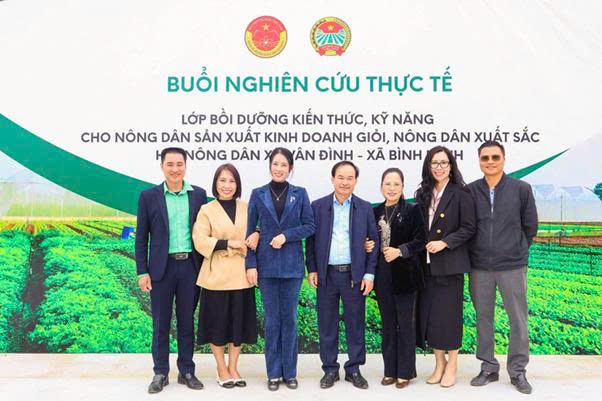 Dự buổi nghiên cứu thực tế có đồng chí Nguyễn Thị Thúy Hà - Phó Bí thư Thường trực Đảng ủy xã Vân Đình; đồng chí Nguyễn Hạnh Vân - Ủy viên Ban Thường vụ Đảng ủy, Chủ tịch Ủy ban Mặt trận Tổ quốc Việt Nam xã; đồng chí Nguyễn Xuân Đại - Đảng ủy viên, Chủ tịch Hội Nông dân xã. Cùng tham gia có hơn 100 nông dân sản xuất, kinh doanh giỏi, nông dân xuất sắc của hai xã Vân Đình và Bình Minh.