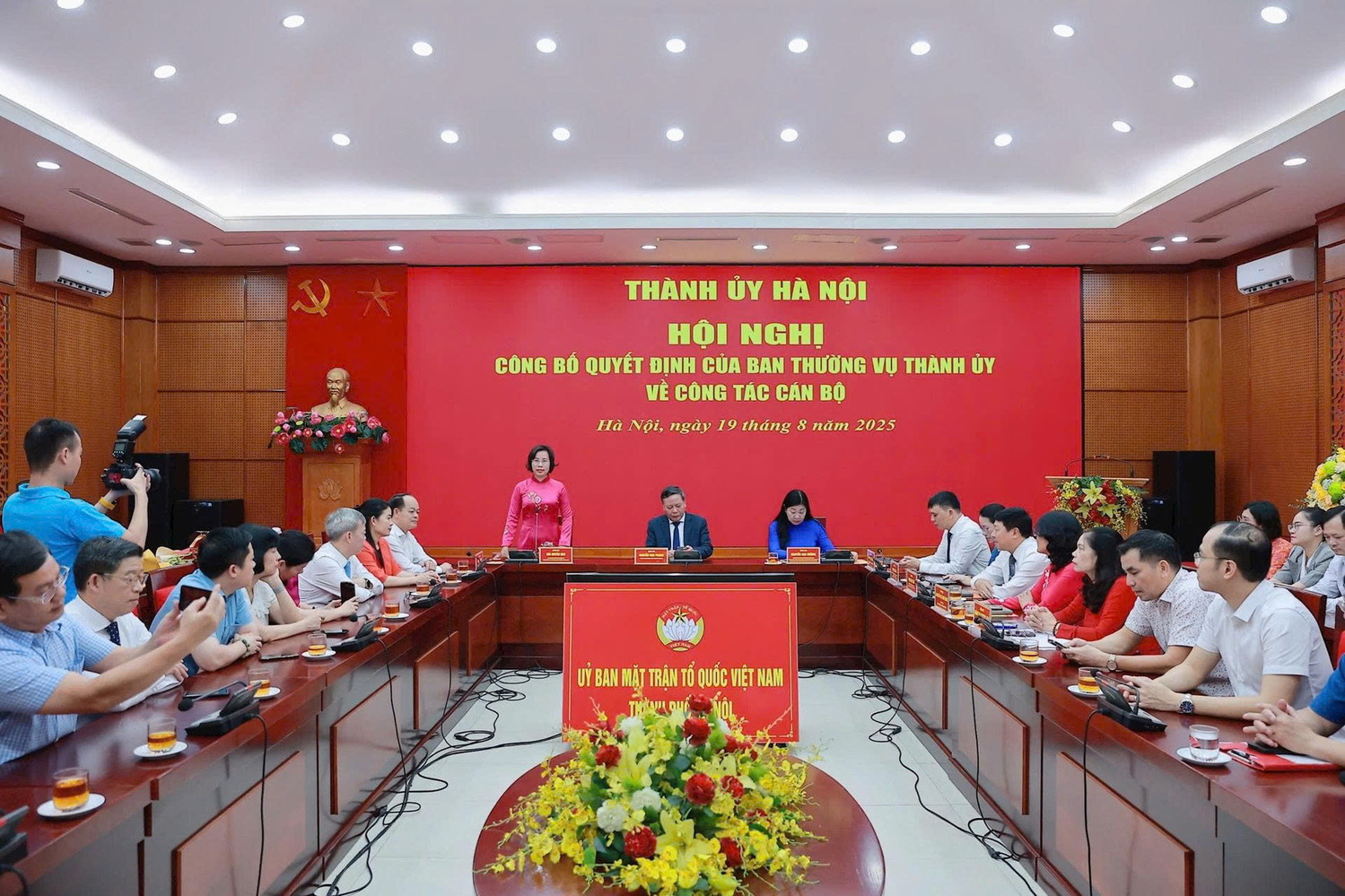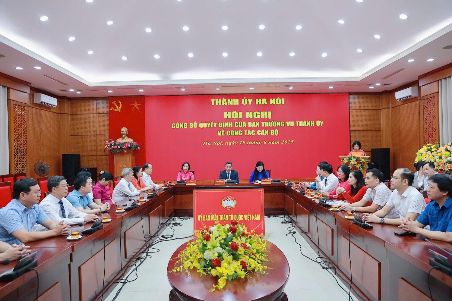 Chiều ngày 19/8/2025, tại trụ sở Ủy ban Mặt trận Tổ quốc Việt Nam thành phố Hà Nội, Phó Bí thư Thường trực Thành ủy Nguyễn Văn Phong chủ trì hội nghị công bố quyết định của Ban Thường vụ Thành ủy về công tác cán bộ.