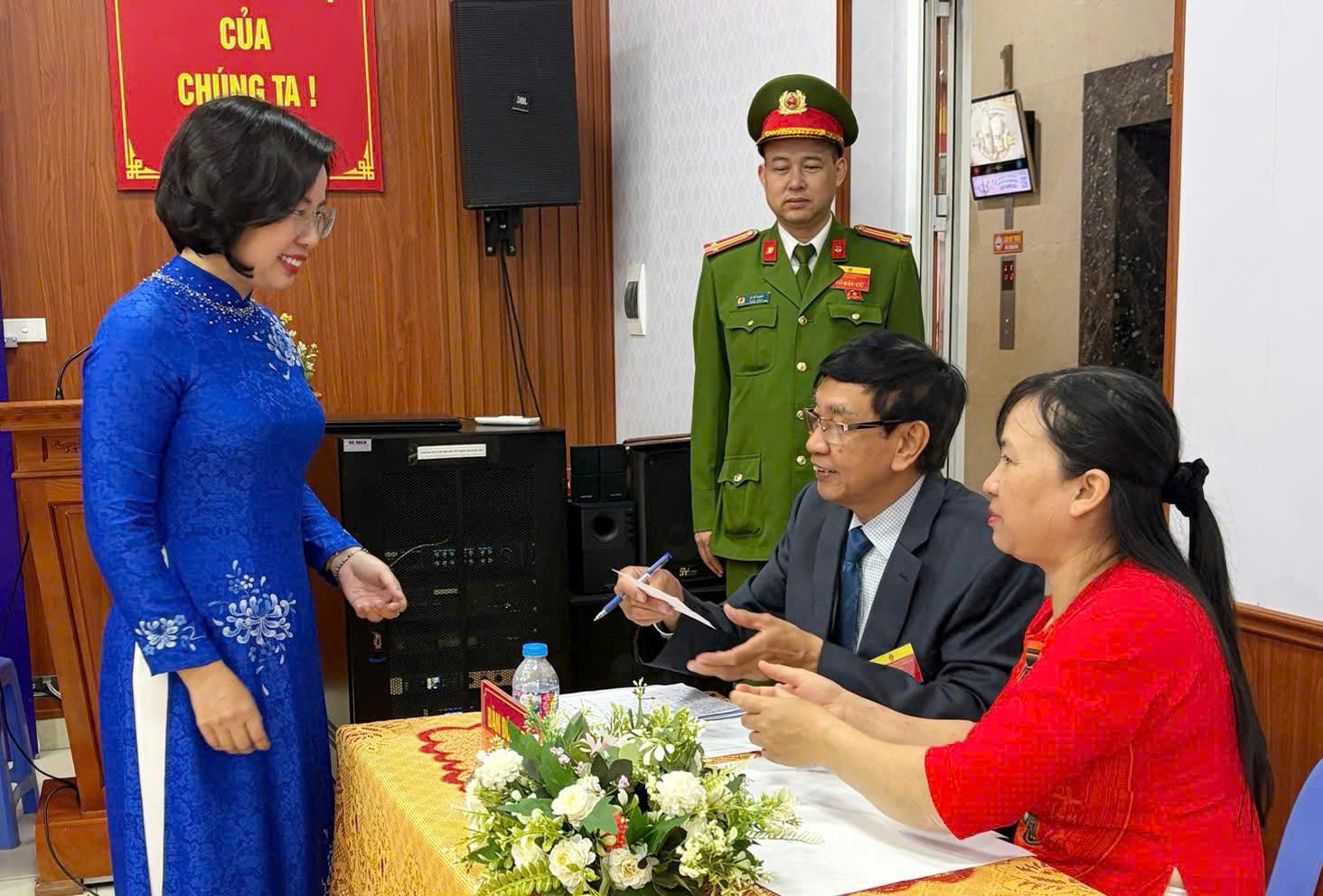 Sau khi bỏ phiếu, đồng chí Bùi Huyền Mai đã trực tiếp thăm hỏi, động viên các thành viên Tổ bầu cử đang làm nhiệm vụ tại khu vực bỏ phiếu; đồng thời ân cần trò chuyện với bà con cử tri địa phương.