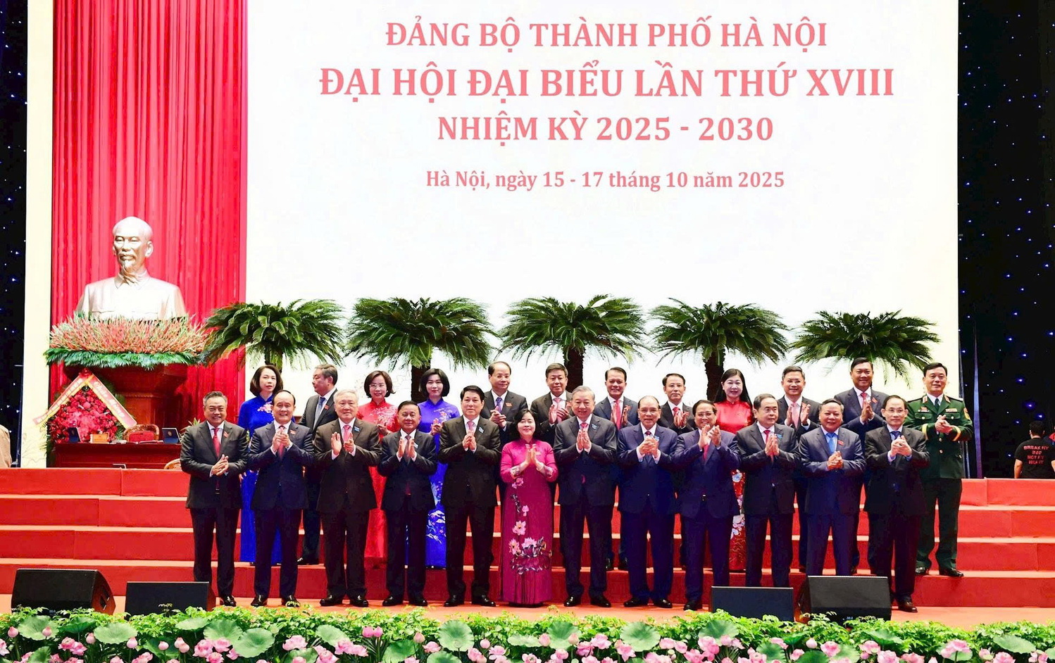 Theo đó, chiều 16-10, Đại hội đã bầu Ban Chấp hành Đảng bộ Thành phố khóa XVIII gồm 75 đồng chí. Tại Hội nghị lần thứ nhất diễn ra cùng ngày, Ban Chấp hành Đảng bộ thành phố Hà Nội khóa XVIII đã bầu đồng chí Bùi Thị Minh Hoài, Ủy viên Bộ Chính trị, Bí thư Thành ủy Hà Nội khóa XVII, Trưởng đoàn đại biểu Quốc hội thành phố Hà Nội giữ chức Bí thư Thành ủy Hà Nội khóa XVIII, nhiệm kỳ 2025-2030.