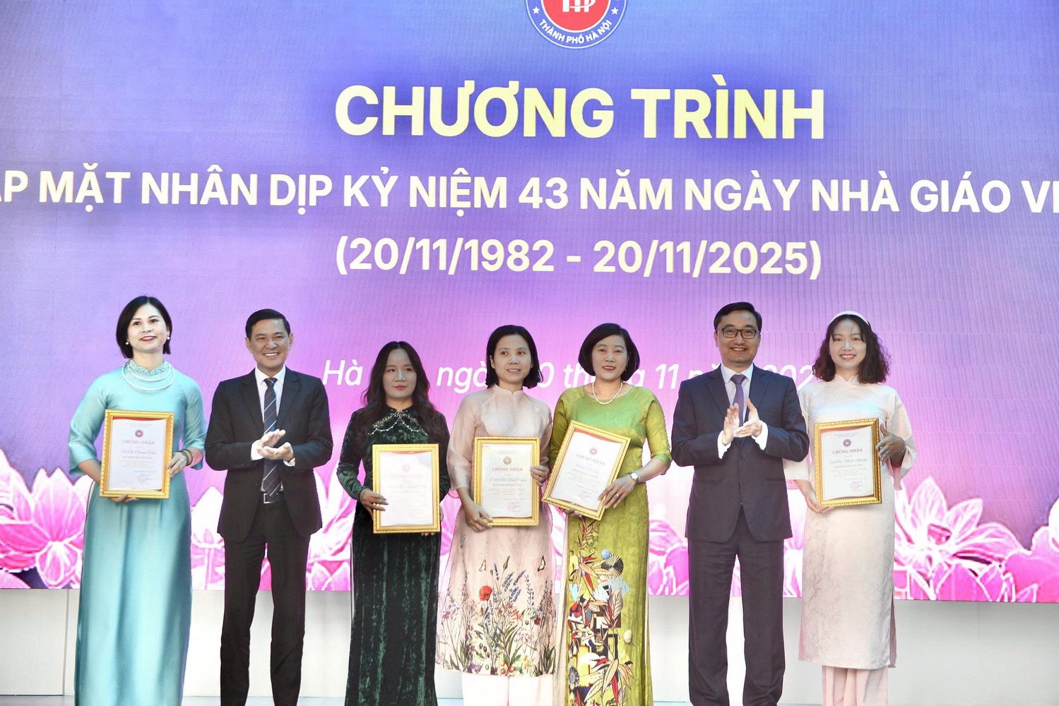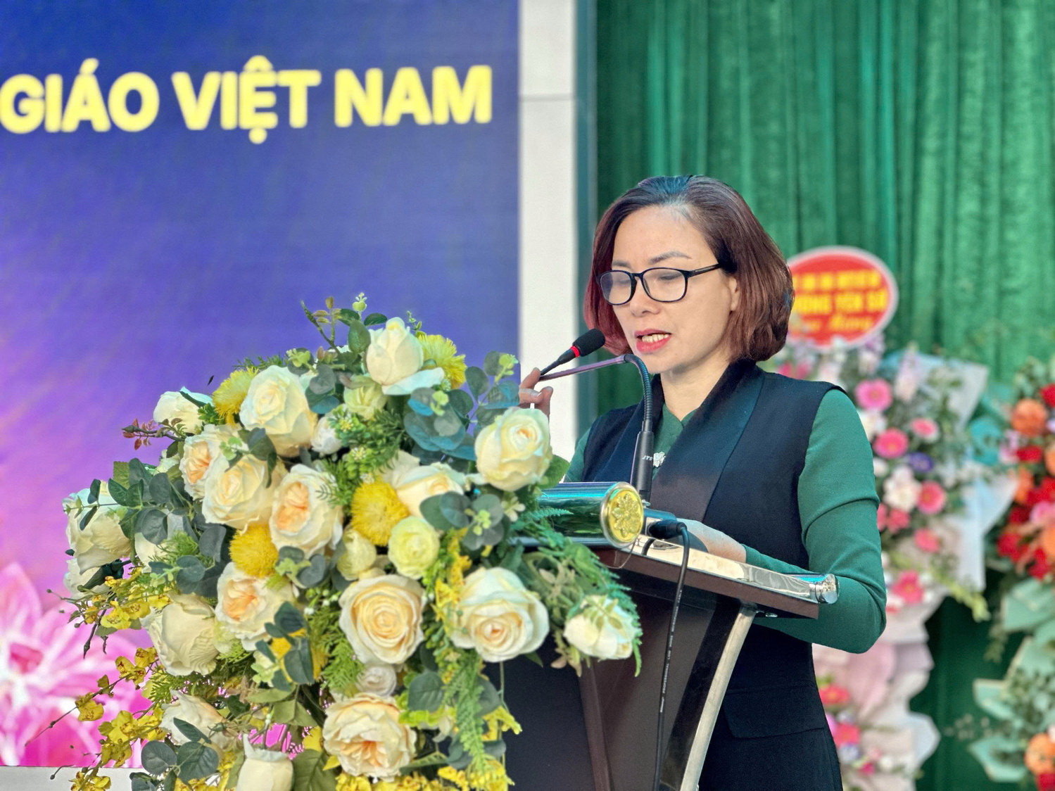 Đại biểu tặng hoa chúc mừng Nhà trường Ngày Nhà giáo Việt Nam 20/11 Trong diễn văn chào mừng, Thầy Hiệu trưởng đã bày tỏ niềm xúc động khi nhìn lại hành trình đầy nỗ lực của tập thể Nhà trường trong hơn hai tháng qua: những giờ dạy học thăng hoa, những hoạt động thể thao - văn nghệ sôi nổi, cuộc thi báo cáo đổi mới “tâm huyết - sáng tạo”, cùng sân khấu rực rỡ của hội thi “Cô giáo tài năng - duyên dáng”. Tất cả đã làm nên bức tranh tháng 11 tươi đẹp, đầy tự hào của những người gieo chữ.