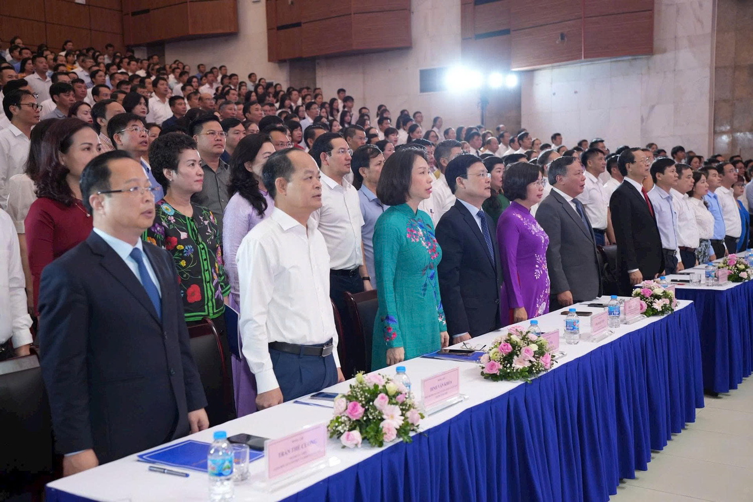 Các đại biểu thực hiện nghi thức chào cờ. Ảnh: Phạm Mạnh