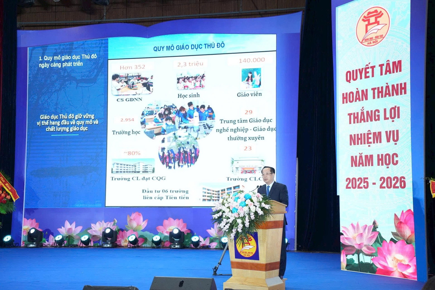 Báo cáo tổng kết năm học 2024-2025 do Giám đốc Sở Giáo dục và Đào tạo Hà Nội Trần Thế Cương trình bày cho thấy, giáo dục Thủ đô phát triển toàn diện về quy mô, chất lượng, là minh chứng cho vị thế đầu tàu, dẫn dắt của giáo dục Thủ đô trong sự nghiệp giáo dục của đất nước.