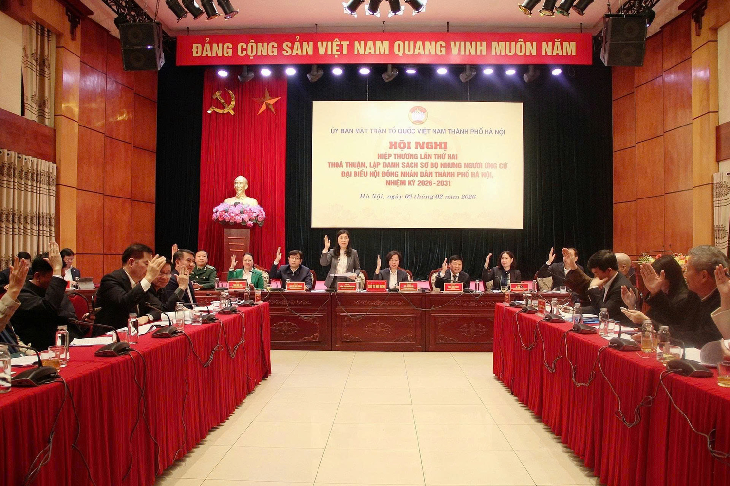 Sáng ngày 2-2, Ủy ban MTTQ Việt Nam thành phố Hà Nội tổ chức hội nghị hiệp thương lần thứ hai thỏa thuận, lập danh sách sơ bộ những người ứng cử đại biểu Quốc hội khóa XVI và đại biểu HĐND thành phố Hà Nội, nhiệm kỳ 2026-2031.