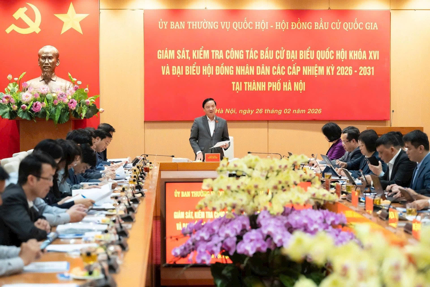 Chiều 26-2, Đoàn công tác của Ủy ban Thường vụ Quốc hội - Hội đồng Bầu cử quốc gia do Ủy viên Trung ương Đảng, Phó Chủ tịch Quốc hội Nguyễn Khắc Định - Ủy viên Hội đồng Bầu cử quốc gia làm Trưởng đoàn đã giám sát, kiểm tra công tác bầu cử đại biểu Quốc hội khóa XVI và đại biểu Hội đồng nhân dân các cấp nhiệm kỳ 2026-2031 tại thành phố Hà Nội.