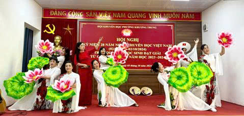 Mở đầu là chương trình văn nghệ chào mừng Hội nghị với những bài ca đi cùng năm tháng do cán bộ, hội viên Hội Khuyến học phường Khương Trung biểu diễn góp phần tạo không khí vui tươi, mamg lại niềm phấn khởi, tự hào cho các đại biểu dự Hội nghị.