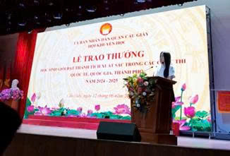 Trao khen thưởng cho các em học sinh đạt giải cao trong các cuộc thi Bên cạnh những kết quả ấn tượng đạt được về thành tích học tập, nghiên cứu, văn hóa văn nghệ, thể dục thể thao…, học sinh quận Cầu Giấy còn là những tấm gương có nhiều thành tích trong các phong trào thi đua, hoạt động ngoại khóa, công tác xã hội, công tác Đoàn, Đội và bản thân có những việc làm tốt, lan tỏa tinh thần tích cực tới cộng đồng, xã hội.