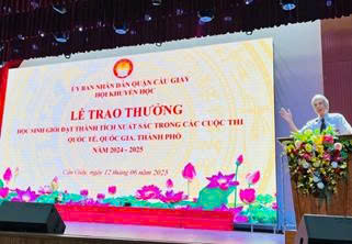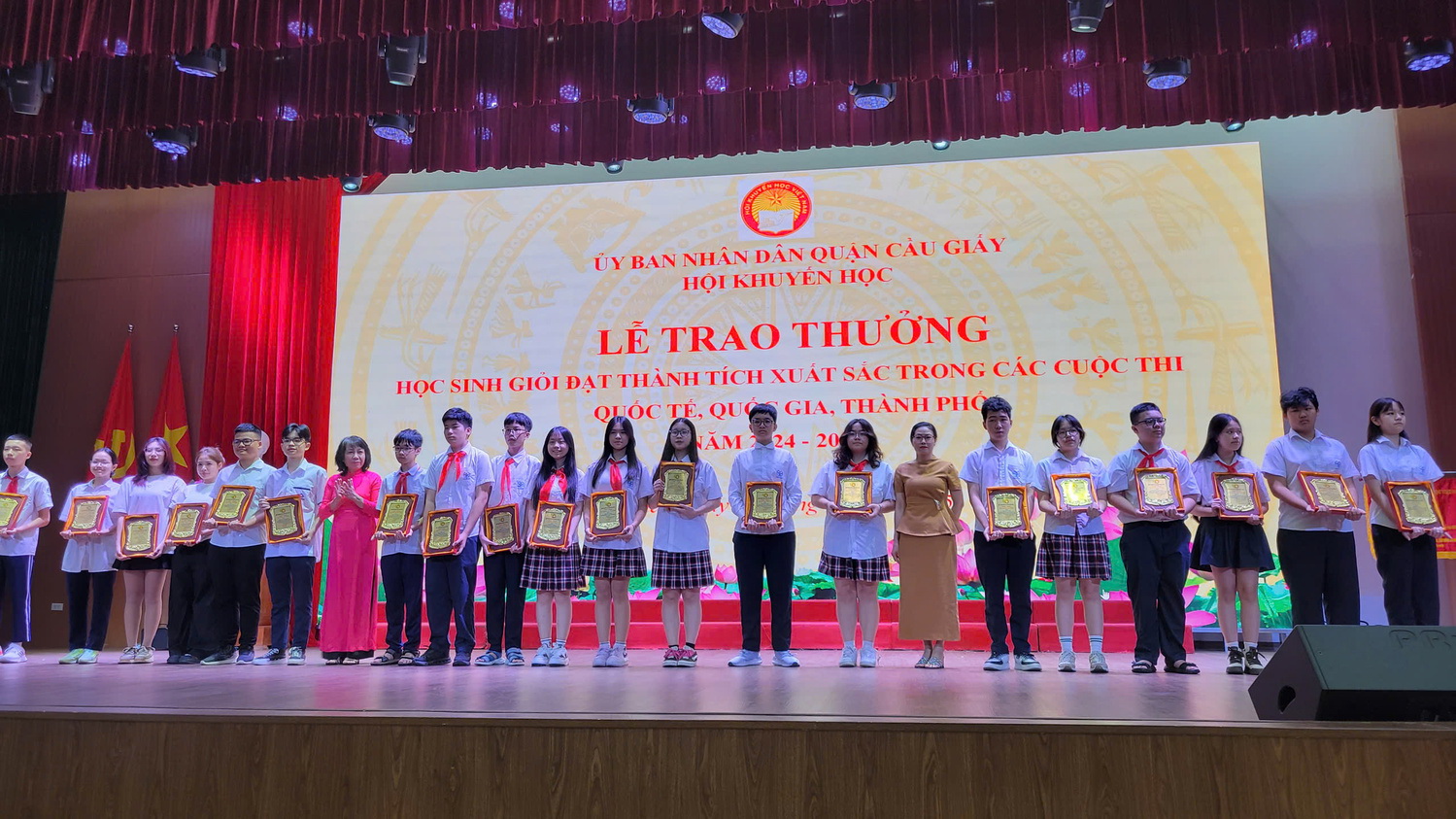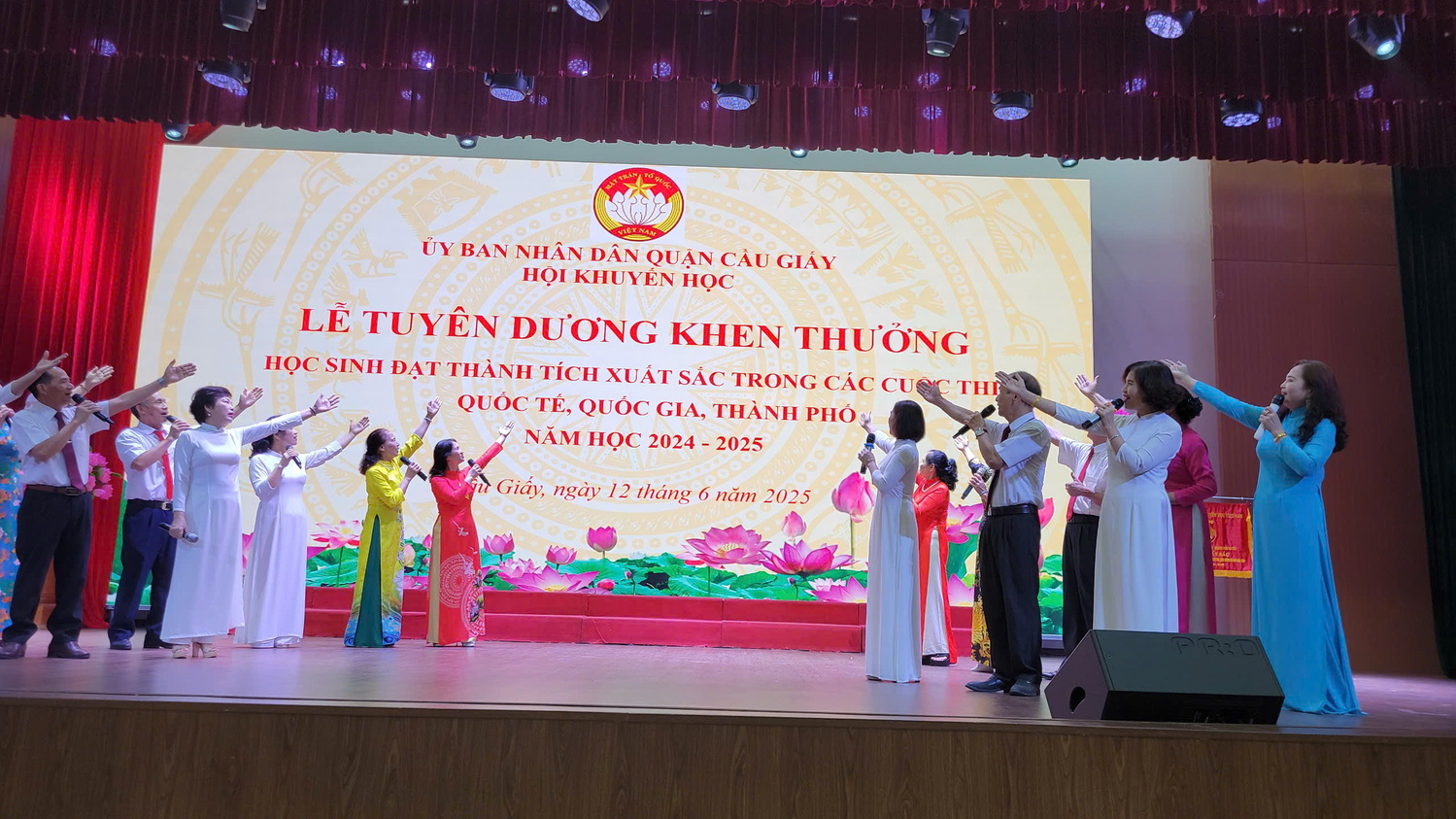 Buổi Lễ Tuyên dương, khen thưởng học sinh đạt thành tích xuất sắc trong các cuộc thi Quốc tế, Quốc gia, Thành phố năm học 2024-2025 đã thành công tốt đẹp, đã để lại dấu ấn đẹp, viết trang cuối vào dòng lịch sử Hội Khuyến học Cầu Giấy trước khi kết thúc và bước vào kỷ nguyên mới vươn mình.