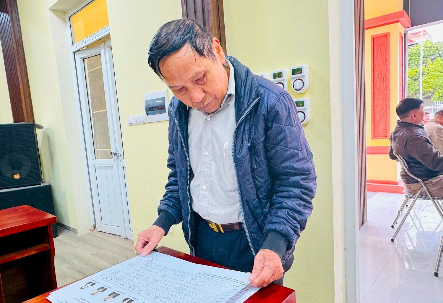 Ông Đoàn Trọng Phùng, cử tri thôn Tân Hà xem danh sách cử tri