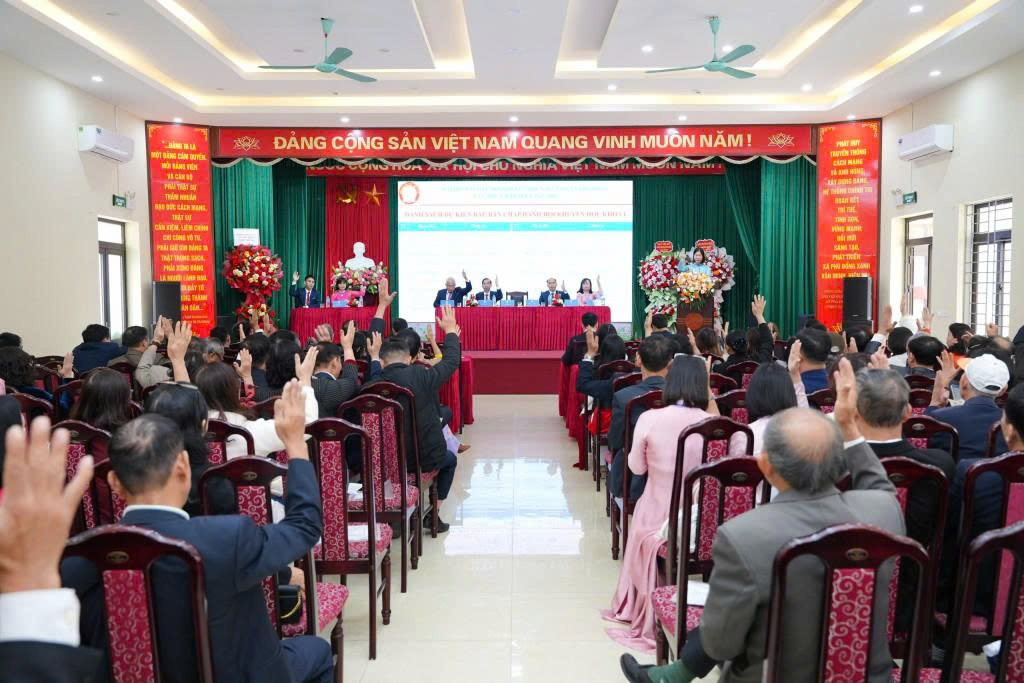 Các đại biểu biểu quyết thông qua dự thảo Nghị quyết Đại hội “Với truyền thống hiếu học của quê hương Phù Đổng, cùng tinh thần đoàn kết, trách nhiệm và tâm huyết của đội ngũ cán bộ Hội, tôi tin tưởng rằng Hội Khuyến học xã Phù Đổng nhiệm kỳ 2025-2030 sẽ hoàn thành tốt Nghị quyết Đại hội đề ra, tiếp tục lan tỏa mạnh mẽ phong trào học tập suốt đời, đóng góp tích cực vào sự phát triển bền vững của địa phương”, đồng chí Nguyễn Đình Quang nhấn mạnh.