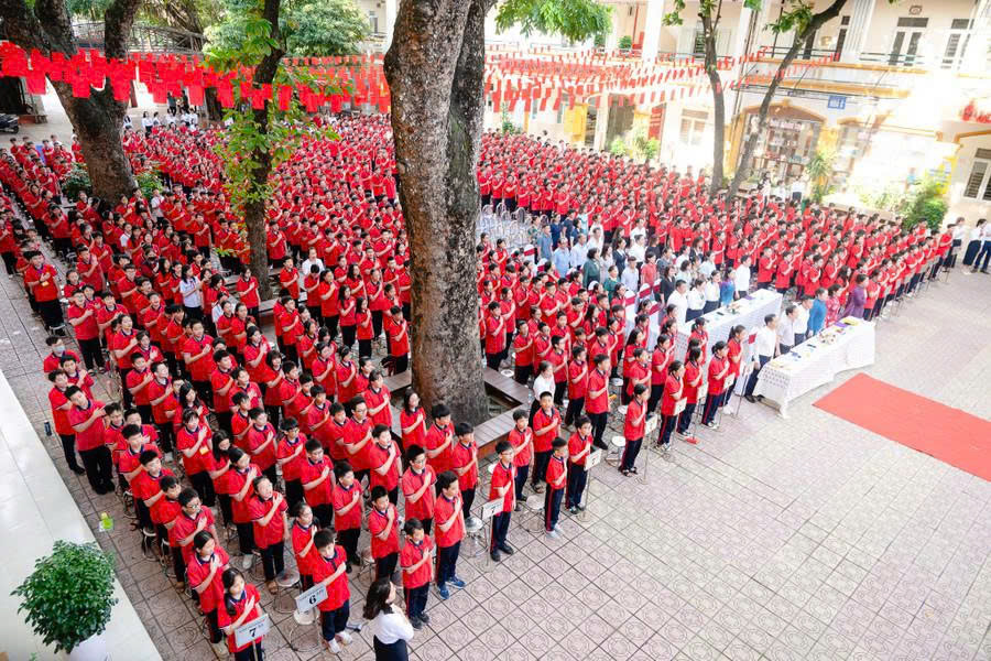 Học sinh Trường THCS Hoàng Liệt tràn ngập trong sắc đỏ