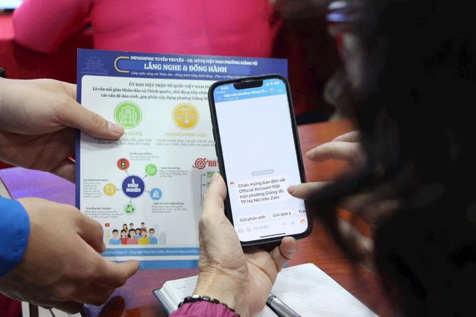 Với mục tiêu “Lắng nghe tiếng nói nhân dân - Đồng hành bằng hành động - Phục vụ bằng trách nhiệm" trang Zalo OA “Mặt trận Tổ quốc Việt Nam phường Giảng Võ” góp phần tạo nên một cộng đồng vững mạnh, phát triển và thân thiện.
