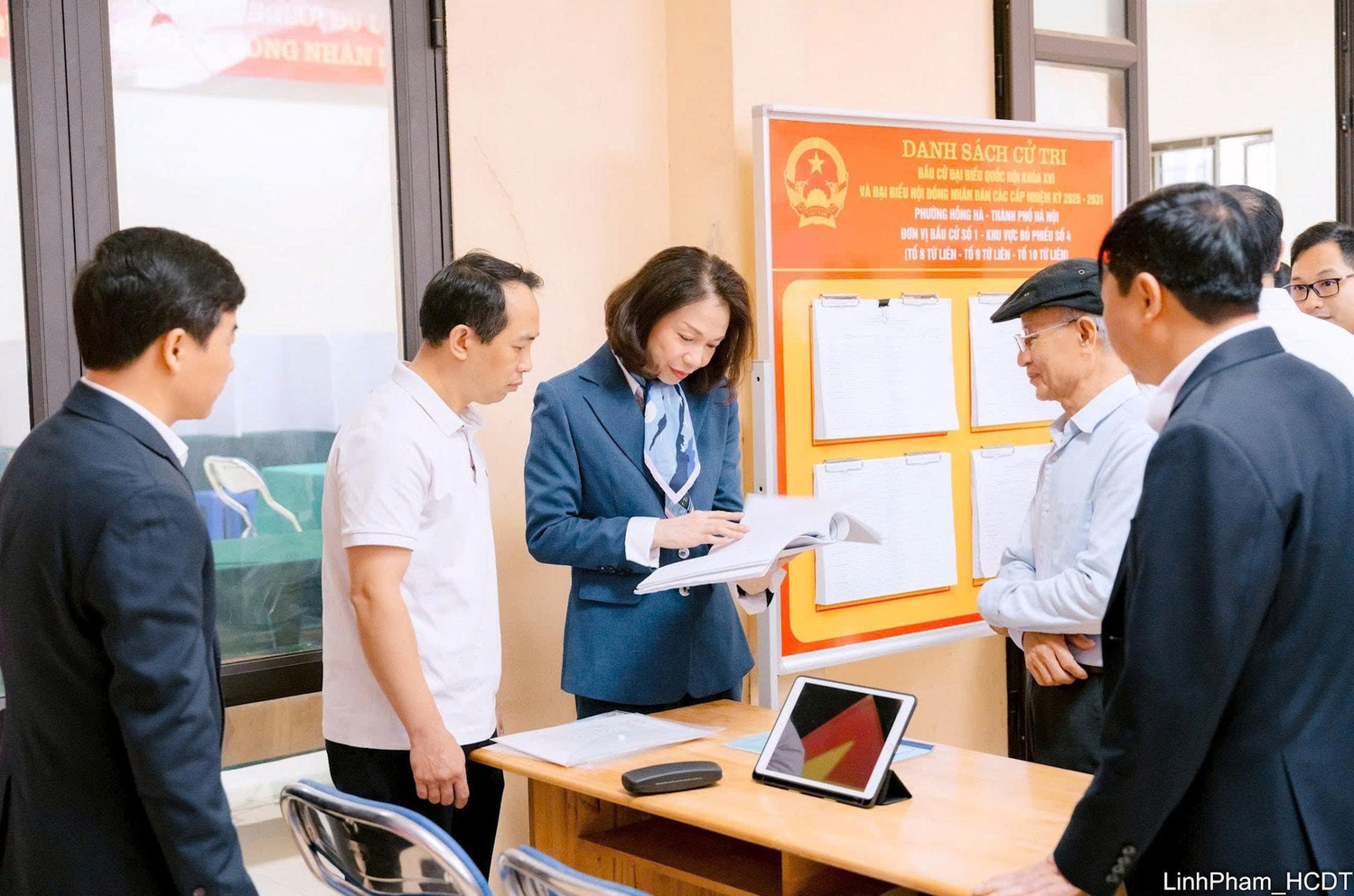 Trước khi làm việc tại trụ sở UBND phường Hồng Hà, Phó Chủ tịch UBND thành phố Hà Nội Vũ Thu Hà đã trực tiếp kiểm tra việc bố trí bàn ghế, khu vực niêm yết danh sách cử tri, danh sách và tiểu sử tóm tắt người ứng cử; vị trí đặt hòm phiếu chính, phương án hòm phiếu phụ; điều kiện bảo đảm an ninh, an toàn, phòng cháy, chữa cháy tại một khu vực bỏ phiếu trên địa bàn phường Hồng Hà.