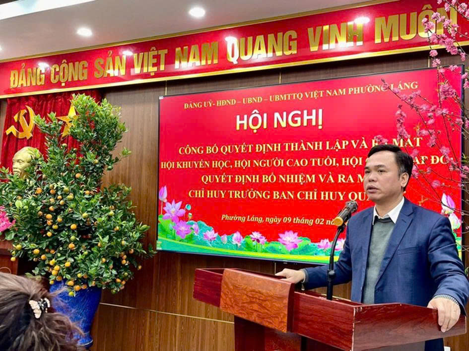 Ngày 9/2, phường Láng tổ chức Lễ công bố quyết định thành lập Hội Người cao tuổi, Hội Khuyến học, Hội Chữ thập đỏ phường và trao quyết định bổ nhiệm Chỉ huy trưởng Ban Chỉ huy Quân sự phường.