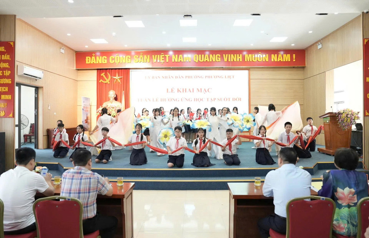 Văn nghệ chào mừng Lễ phát động Tuần lễ hưởng ứng học tập suốt đời Phát biểu tại Lễ khai mạc, Phó Chủ tịch UBND phường Phương Liệt Ngô Minh Hồng cho biết, Tuần lễ hưởng ứng học tập suốt đời năm 2025 của phường Phương Liệt được phát động với chủ đề: “Học để phát triển bản thân, làm chủ tri thức và công nghệ, góp phần xây dựng đất nước hùng cường, thịnh vượng”. Chủ đề này không chỉ là lời kêu gọi mà còn là định hướng cho mỗi cá nhân, mỗi gia đình và toàn xã hội trong hành trình không ngừng tiếp thu tri thức, làm chủ công nghệ để thích ứng và phát triển trong kỷ nguyên số.