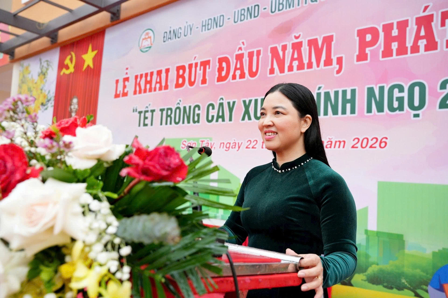 Phát biểu tại buổi lễ, Phó Bí thư Đảng ủy, Chủ tịch UBND phường Sơn Tây Nguyễn Thị Thu Hương nhấn mạnh, khai bút đầu Xuân là nét đẹp văn hóa truyền thống của dân tộc, thể hiện tinh thần hiếu học, sự trân trọng tri thức và khát vọng vươn lên bằng học tập, lao động, sáng tạo.