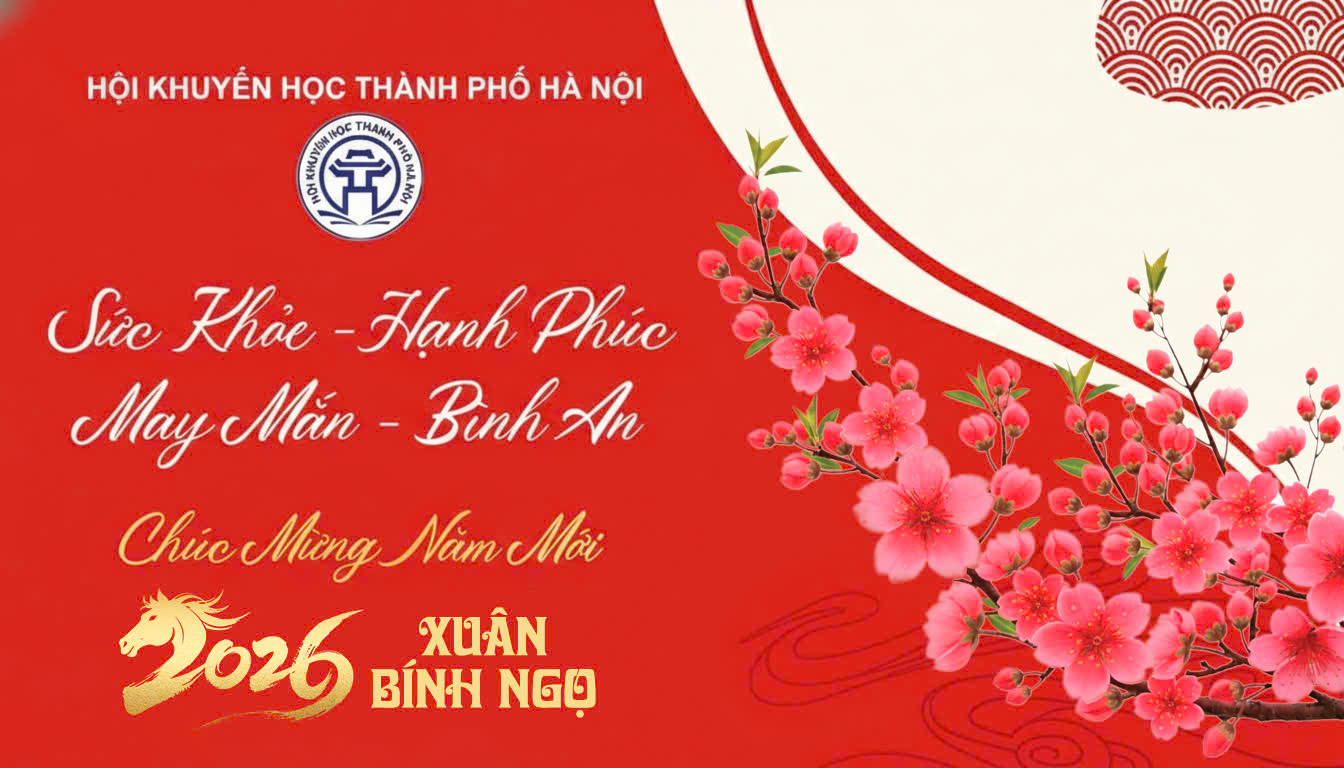 Trong không khí hân hoan chào đón năm mới 2026 và chuẩn bị đón Xuân Bính Ngọ - Tết cổ truyền của dân tộc, Ban Thường vụ Hội Khuyến học thành phố Hà Nội trân trọng gửi đến toàn thể cán bộ, hội viên, cộng tác viên đã và đang tham gia công tác khuyến học, khuyến tài trên địa bàn thành phố Hà Nội, cùng toàn thể bạn đọc "Trang Thông tin Điện tử" (website) Hội Khuyến học Hà Nội và gia đình lời chúc mừng năm mới: Sức khỏe dồi dào - Bình an trọn vẹn - Hạnh phúc sum vầy - Tràn đầy năng lượng sáng tạo!