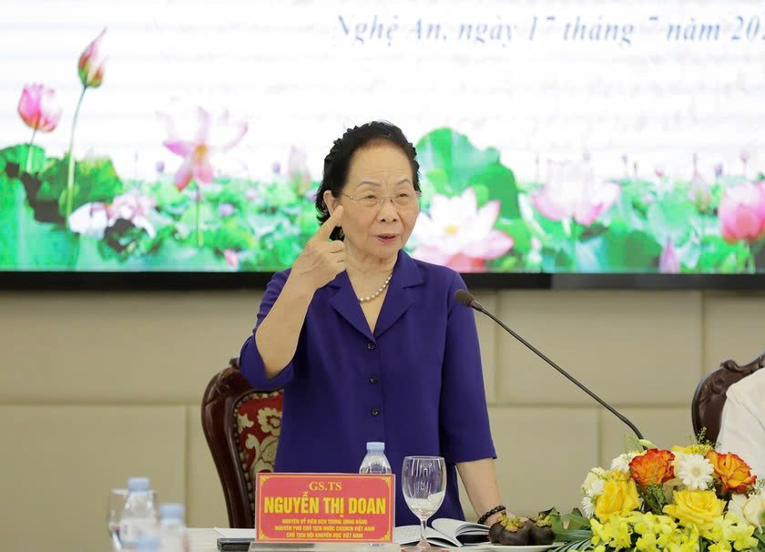 GS.TS.Nguyễn Thị Doan hoan nghênh các tỉnh, thành đã chủ động sáng tạo, nhiều cách làm hay, tâm huyết trách nhiệm với sự nghiệp khuyến học, khuyến tài.