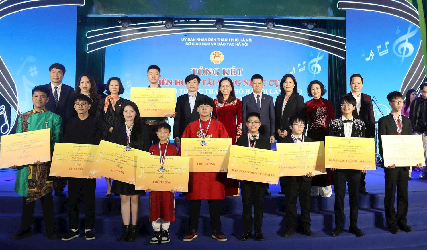 Tại lễ tổng kết và trao giải Liên hoan tài năng nhạc cụ học sinh phổ thông Hà Nội, Ban Tổ chức đã trao 27 Huy chương Vàng, 33 Huy chương Bạc, 49 Huy chương Đồng; ngoài ra còn trao 7 giải Triển vọng và 45 Giấy chứng nhận cho học sinh tham gia Liên hoan. Bên cạnh đó, nhà tài trợ dành tặng 10 phần quà cho 10 tiết mục xuất sắc được lựa chọn trong tổng số 161 tiết mục dự thi.
