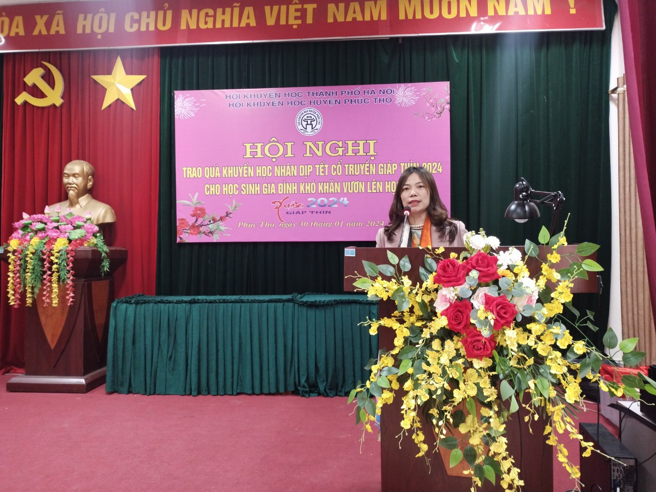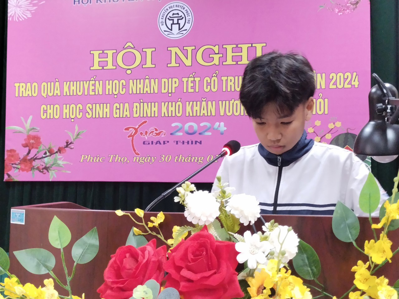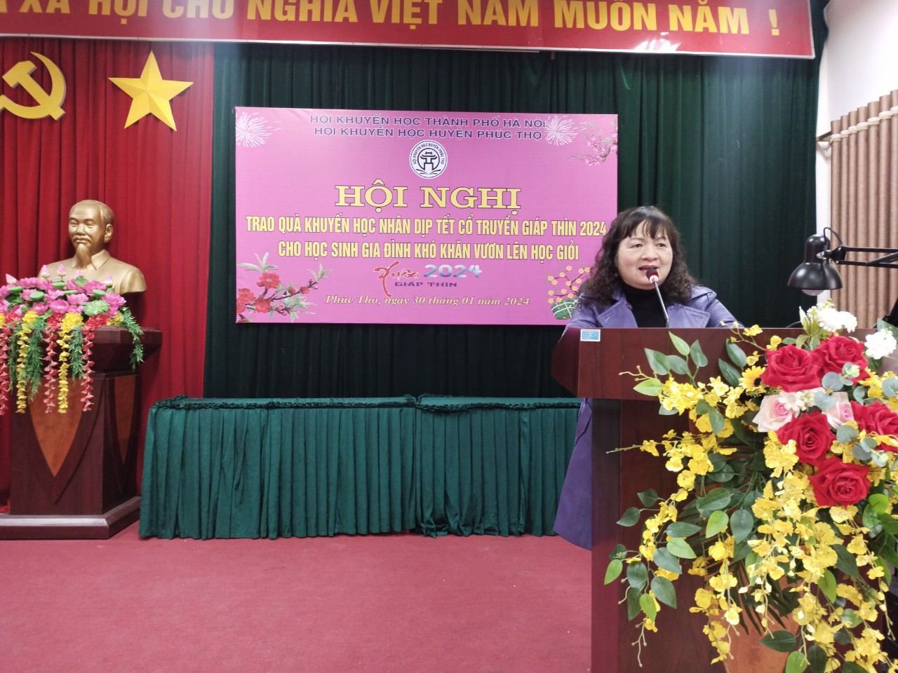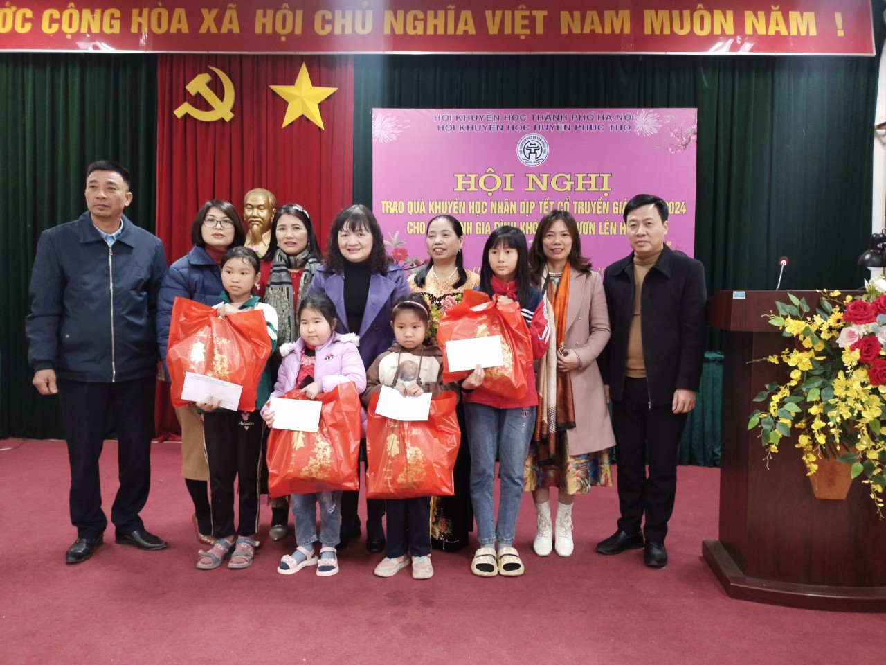 Sáng ngày 30 tháng 01 năm 2024, tại Hội trường Phòng Giáo dục và Đào tạo huyện Phúc Thọ, Hội Khuyến học thành phố Hà Nội đã phối hợp với Hội Khuyến học huyện Phúc Thọ tổ chức trao tặng quà khuyến học cho 26 học sinh có hoàn cảnh khó khăn, vượt khó học giỏi trên địa bàn huyện Phúc Thọ nhân dịp đón Tết cổ truyền dân tộc - Xuân Giáp Thìn năm 2024.