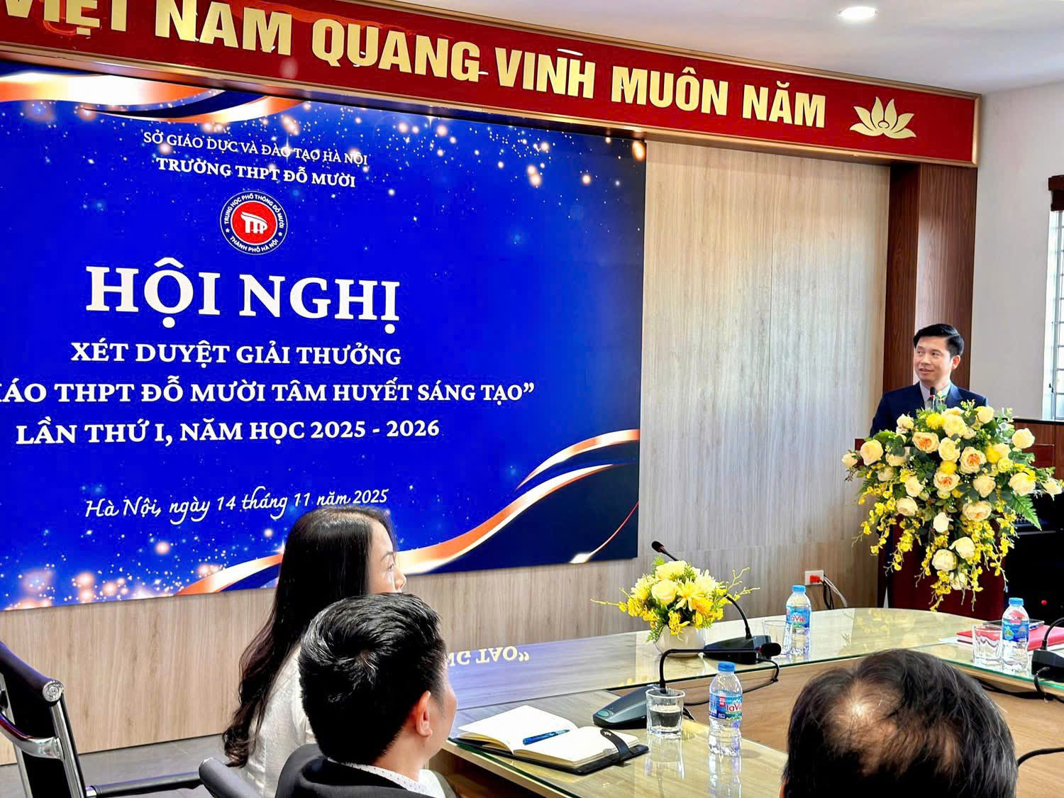 Hưởng ứng thi đua lập thành tích trong chuỗi hoạt động của thầy và trò Trường THPT Đỗ Mười chào mừng thành công Đại hội Đảng bộ thành phố Hà Nội lần thứ XVIII, hướng tới chào mừng Đại hội đại biểu toàn quốc lần thứ XIV của Đảng. Trong không khí tri ân các nhà giáo, hướng tới kỷ niệm 43 năm Ngày Nhà giáo Việt Nam (20/11/1982-20/11/2025); Chiều ngày 14/11, Trường THPT Đỗ Mười đã tổ chức giải thưởng “Nhà giáo THPT Đỗ Mười tâm huyết, sáng tạo” lần thứ nhất năm học 2025-2026.