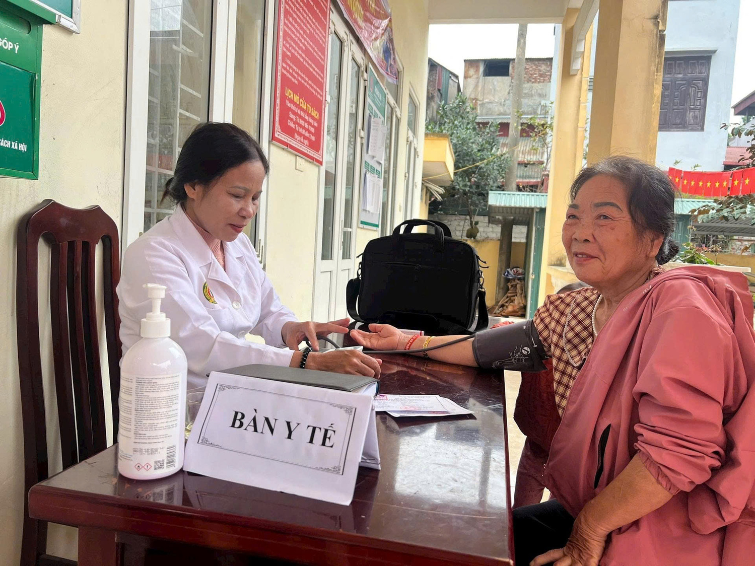 Cùng với lực lượng an ninh, các cán bộ y tế cũng túc trực tại tất cả các khu vực bỏ phiếu để kịp thời chăm sóc sức khỏe cho cử tri và các lực lượng làm nhiệm vụ. Nhiều cử tri cao tuổi được kiểm tra huyết áp, theo dõi sức khỏe trước khi tham gia bỏ phiếu, giúp mọi người yên tâm thực hiện quyền công dân. Song song với công tác tổ chức tại các khu vực bỏ phiếu, hoạt động thông tin tuyên truyền cũng được xã Ứng Thiên triển khai đồng bộ, góp phần lan tỏa không khí ngày hội bầu cử trên toàn địa bàn. Thực hiện chỉ đạo của Ban Chỉ đạo và Ủy ban Bầu cử xã, Trung tâm Dịch vụ tổng hợp xã Ứng Thiên đã đẩy mạnh công tác trang trí, cổ động trực quan và tuyên truyền rộng khắp.