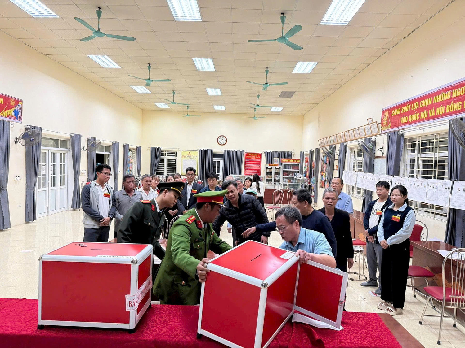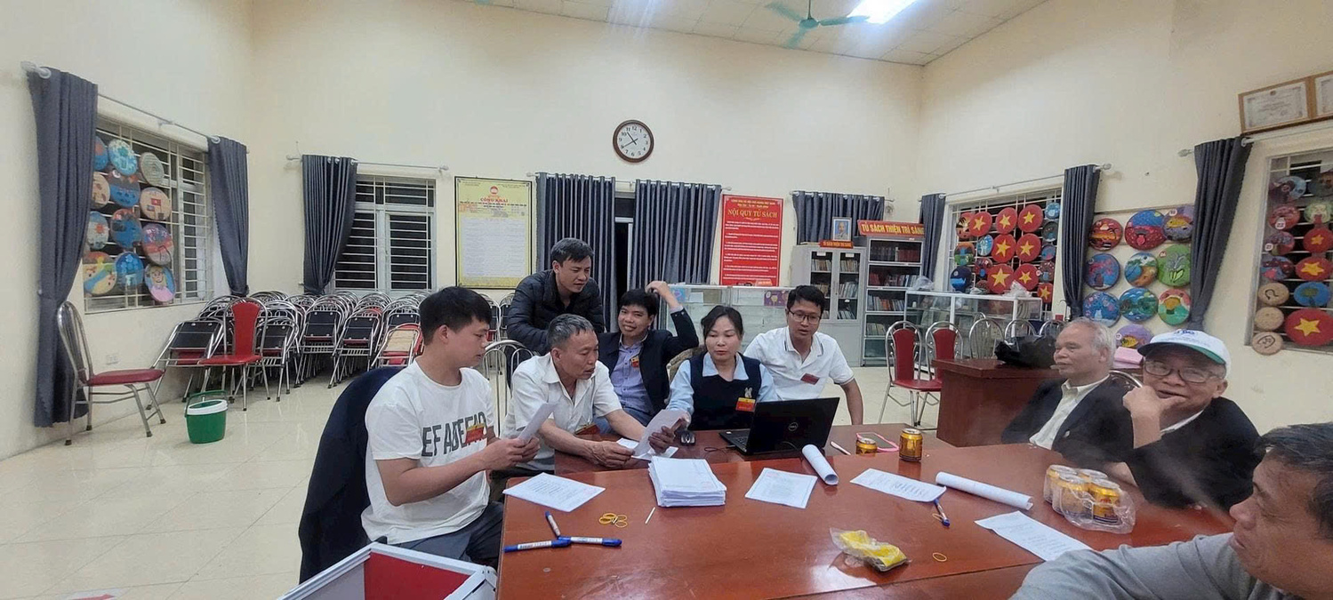 Đúng 19h00 ngày 15-3, khi các khu vực bỏ phiếu trên địa bàn xã Ứng Thiên chính thức đóng cửa, 29/29 khu vực bỏ phiếu đồng loạt triển khai nhiệm vụ kiểm phiếu. Dưới ánh đèn tại các nhà văn hóa thôn, các thành viên tổ bầu cử cùng lực lượng phục vụ miệt mài làm việc với tinh thần trách nhiệm cao, bảo đảm việc kiểm phiếu diễn ra công khai, minh bạch và đúng quy định.