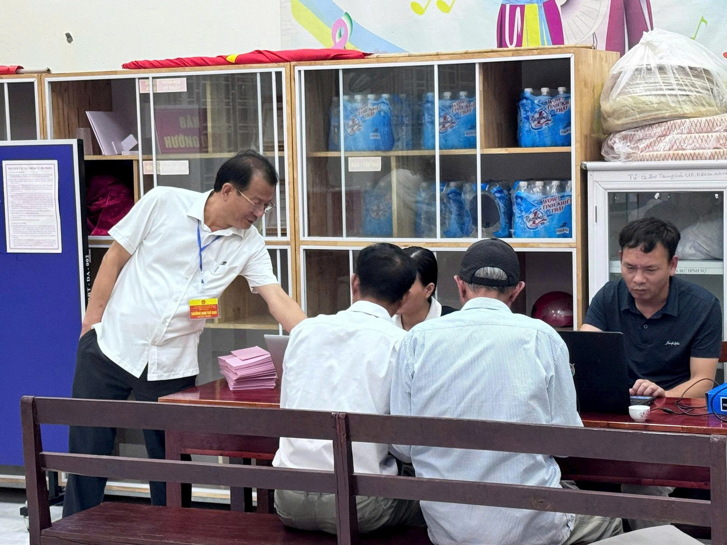 Các lực lượng tham gia công tác bầu cử tại xã Ứng Thiên Để bảo đảm quyền bầu cử của các cử tri đặc biệt này, các tổ bầu cử đã chủ động mang hòm phiếu phụ đến tận nơi để các cụ thực hiện quyền công dân. Hình ảnh các thành viên tổ bầu cử ân cần hướng dẫn, hỗ trợ từng cử tri đã để lại nhiều xúc động trong ngày hội lớn của địa phương.