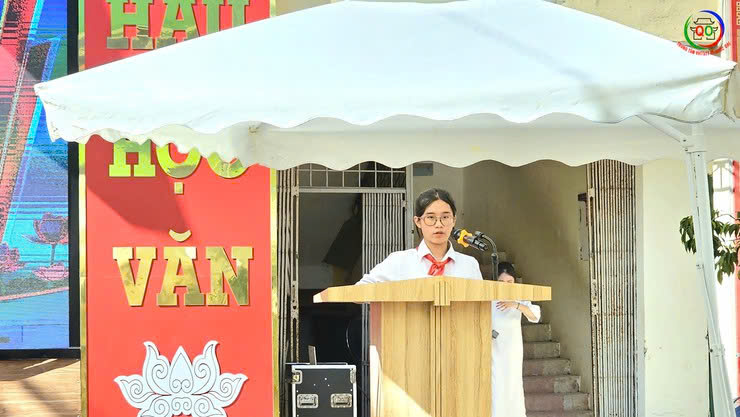 đại diện học sinh của xã Quôc Oai phát biểu chia sẻ cảm nghĩ tại buổi Lễ