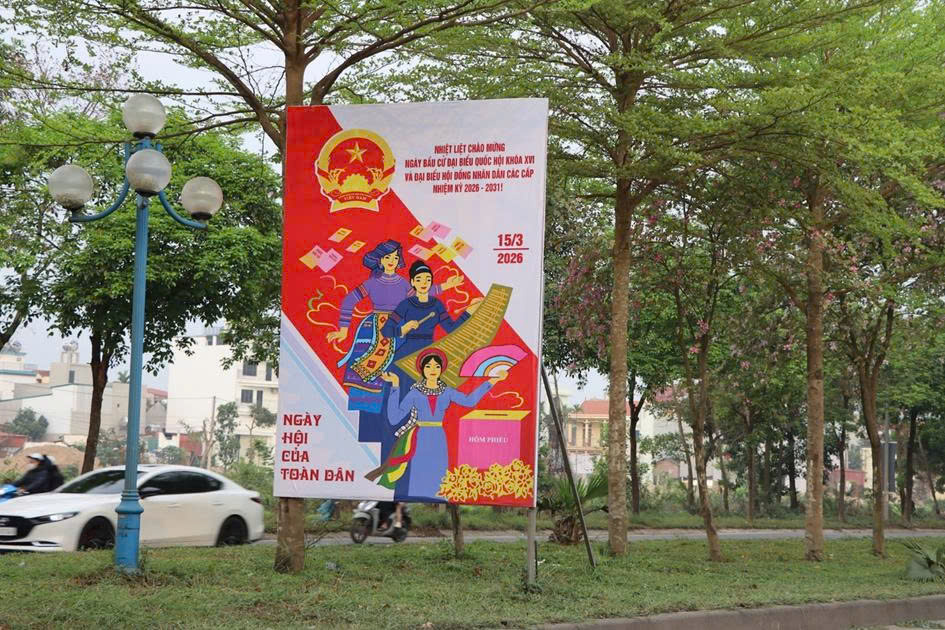 Các tấm pa nô, biểu trưng tuyên truyền về bầu cử đại biểu Quốc hội