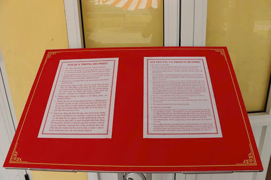 Đồng thời danh sách cử tri được in và niêm yết tại Nhà văn hóa khu vực bỏ phiếu số 11, tạo điều kiện thuận lợi cho người dân, người già không sử dụng điện thoại thông minh nắm bắt được thông tin rõ và chi tiết hơn. Bên cạnh đó, tính đến thời điểm này, việc phân công nhiệm vụ cho các bộ phận tại khu vực bỏ phiếu được thực hiện rõ ràng, cụ thể đảm bảo theo đúng yêu cầu.